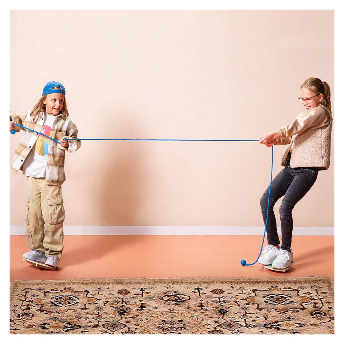 • Tine franghia ferm si stai pe placa de echilibru, dar ai grija - adversarul tau incearca sa te traga afara fara ca el sa cada! Acesta este jocul care combina distractia cu provocarea echilibrului si a strategiei!