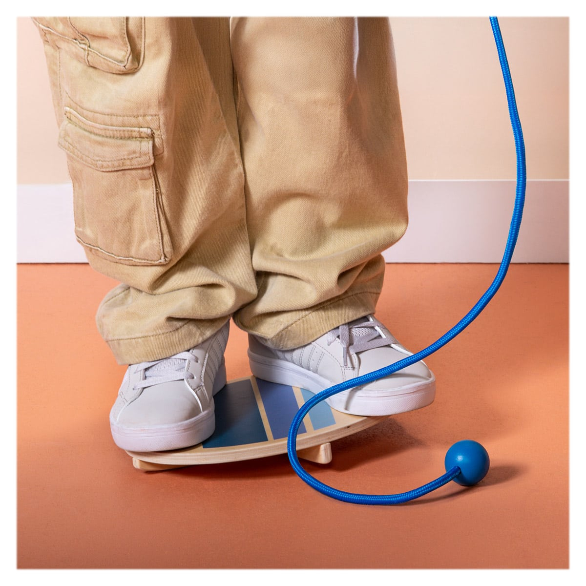 • Setul contine: 2 placi de echilibru din lemn, o franghie care are la capete doua bile din lemn.
