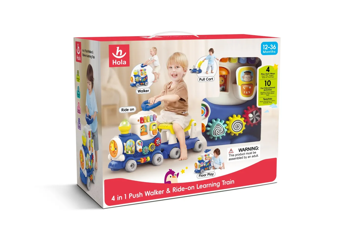 Jucarie de impins 4 in 1 Trenut combina doua parti detasabile partea de tren si scaunul. Partea cu trenul ofera o multime de jocuri pentru copii, inclusiv o varietate de sunete, muzica si efecte luminoase. Scaunul poate fi transformat intr-un vagon pentru transportarea si depozitarea jucariilor. Acesta este cadoul perfect pentru copiii cu varste cuprinse intre 1 si 3 ani. Caracteristici 4 moduri de joaca(roaba, carucior, carucior pentru transportul jucariilor si scaun de joaca), 9 jocuri educative(o varietate de jocuri pentru dezvoltarea copilului), o varietate de muzica si efecte sonore de tren(sunete si melodii interesante), compartiment de depozitare(un loc convenabil pentru a depozita jucariile), panou de blocuri(un panou de joaca pentru dezvoltarea abilitatilor motorii si cognitive). Beneficiile pe care le aduce sunt dezvoltarea motricitatii (jocurile cu rostogolirea, mersul si deplasarea vagonului ajuta la dezvoltarea abilitatilor motorii mari), dezvoltare senzoriala(efectele sonore si luminoase stimuleaza perceptia auditiva si vizuala), dezvoltare cognitiva(jocurile educative si panoul cu blocuri ajuta la dezvoltarea gandirii logice si a abilitatilor de rezolvare a problemelor), interactiunea sociala(posibilitatea de a se juca cu alti copii promoveaza dezvoltarea abilitatilor de comunicare), siguranta si confort(stabilitatea ridicata a designului si scaunul moale asigura confortul si siguranta in timpul jocului). Jucarie de impins 4 in 1 Trenut va fi un companion excelent pentru bebelus, contribuind la dezvoltarea sa si oferind jocuri distractive si active.