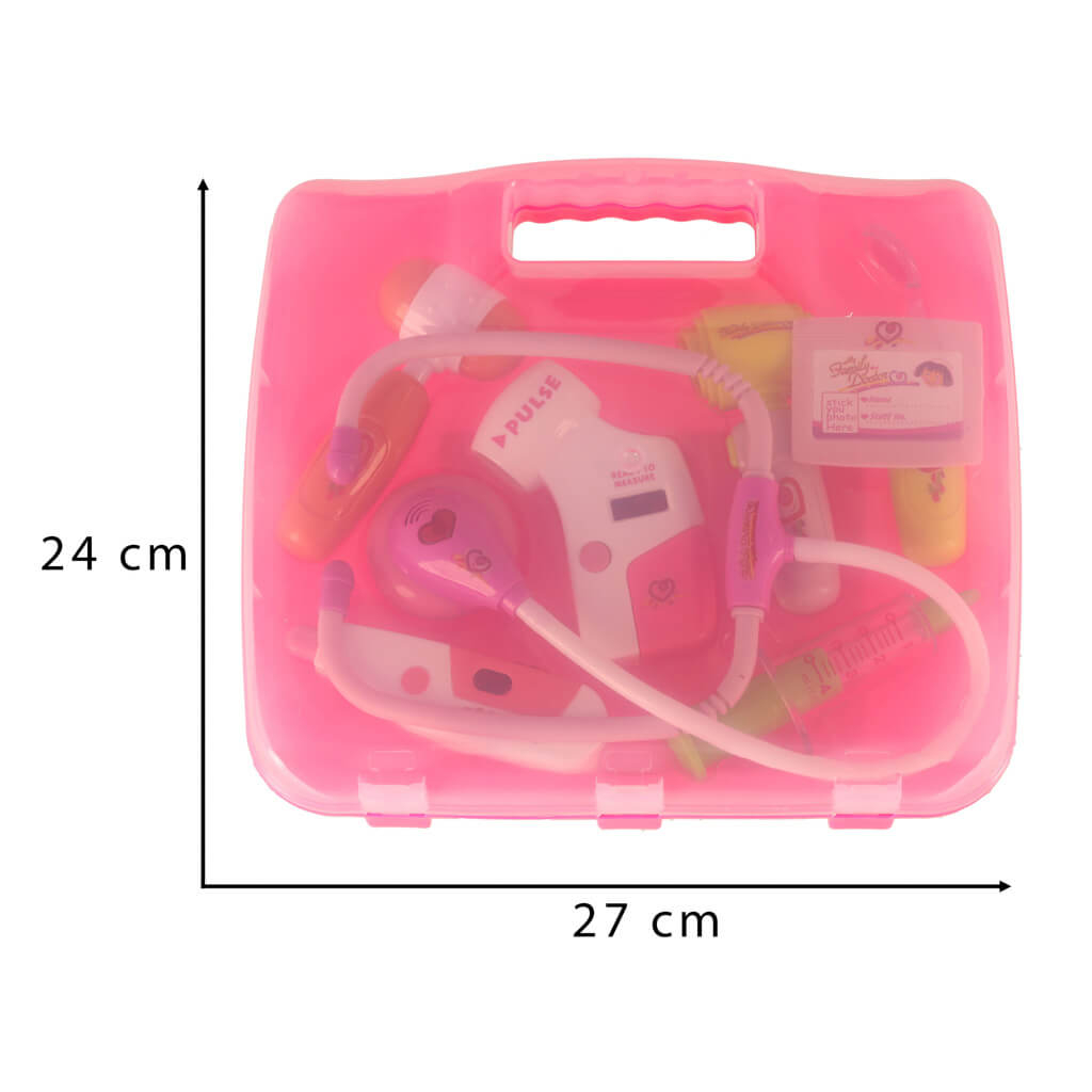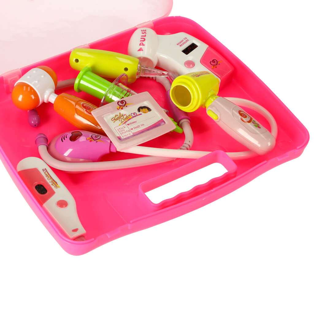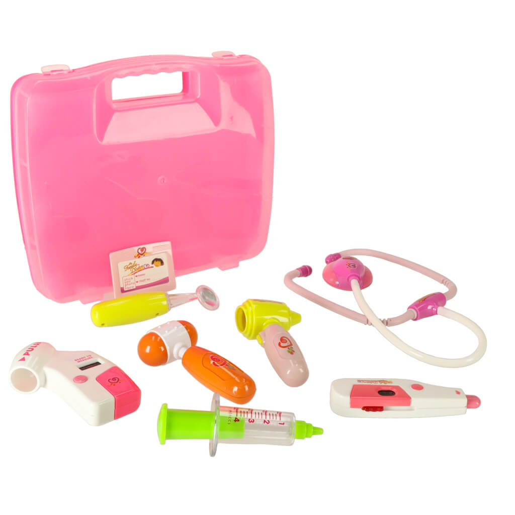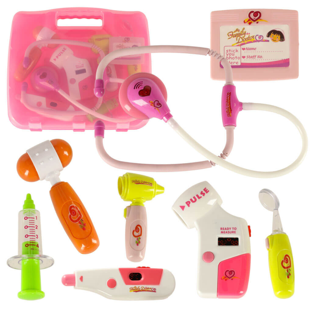 Acest produs este o trusa doctor pentru copii, tip valiza portabila, cu accesorii medicale interactive, unele cu efecte de lumina si sunet, destinata copiilor de peste 3 ani. Setul permite joc de rol realist de tip „doctor”, ajutand copiii sa se familiarizeze cu instrumentele medicale, sa inteleaga vizitele la medic si sa dezvolte empatia si comunicarea. Trusa include instrumente de baza precum stetoscop, termometru, seringa, ciocanel reflex, otoscop si ecuson de doctor, toate depozitate intr-o valiza practica, usor de transportat si organizat.