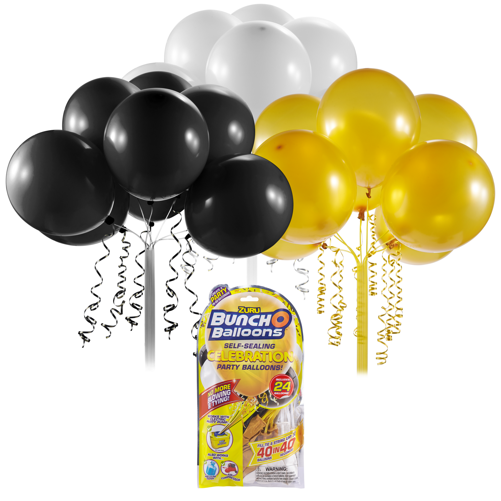 Pregatiti o petrecere in 40 de secunde: umpleti, legati si insirati pana la 40 de baloane in 40 de secunde. Baloane auto-legate cu panglica pre-atasata: baloane de petrecere de 28cm cu auto-etansare si panglici atasate. Perfect pentru decoratiuni de petrecere. Design inovator: design revolutionar brevetat care va permite sa economisiti timp si respiratie. Sigur pentru copii si mediu: baloane din latex premium complet reutilizabile si biodegradabile. Utilizari multiple, inclusiv heliu: Vine cu adaptor de heliu pentru a umple 8 baloane in cateva secunde. Pompa electrica pentru petrecere nu este inclusa._x000D_ Umflati 1 tulpina (8 baloane), 2 tulpini (16 baloane) sau 5 tulpini (40 de baloane) si urmariti cum se umplu in 40 de secunde. Fiecare pachet include 24 de baloane de petrecere in culorile Negru, Auriu, Alb._x000D_ Acest pachet include: 3 x tulpini de petrecere Bunch O Balloons (24 de baloane albe din latex)