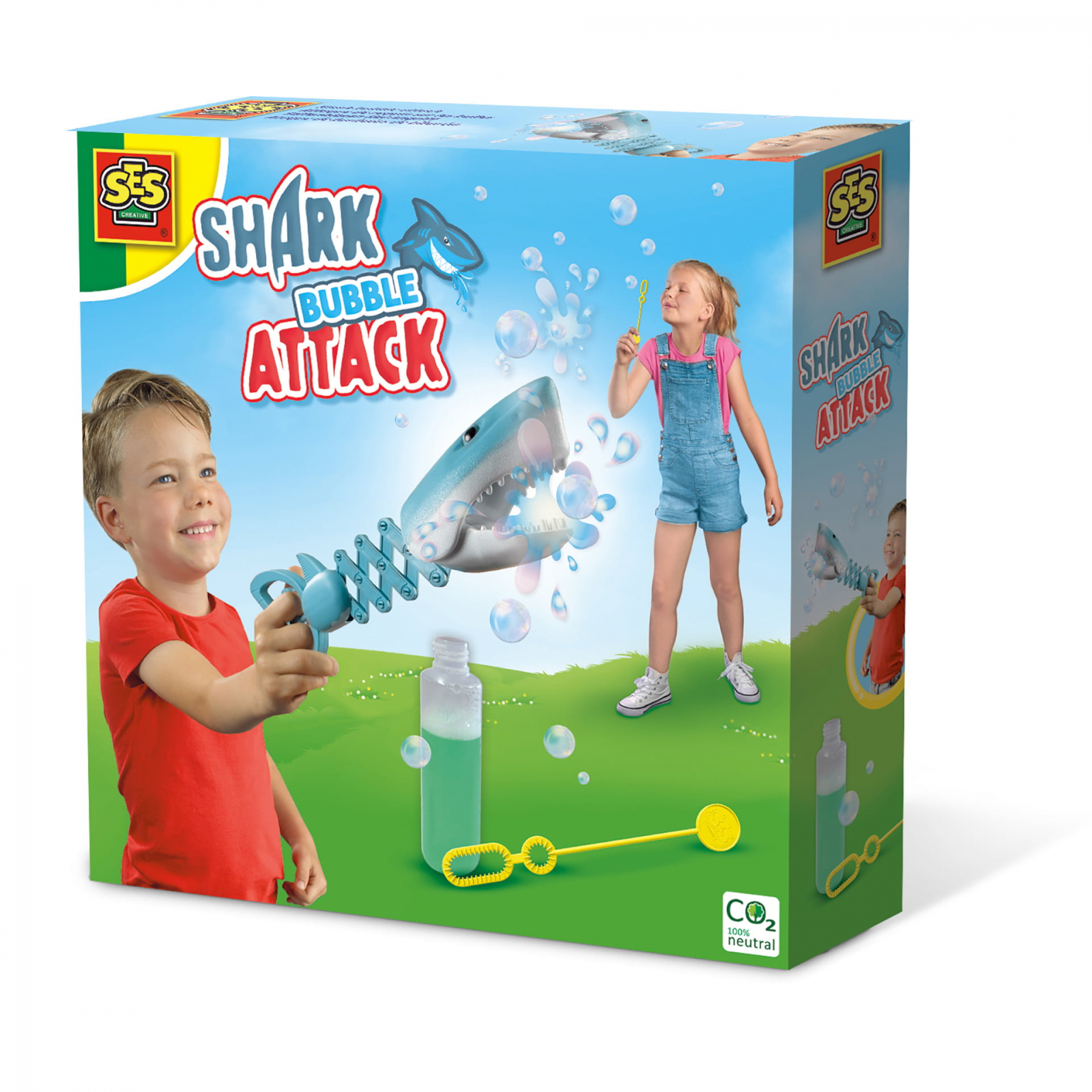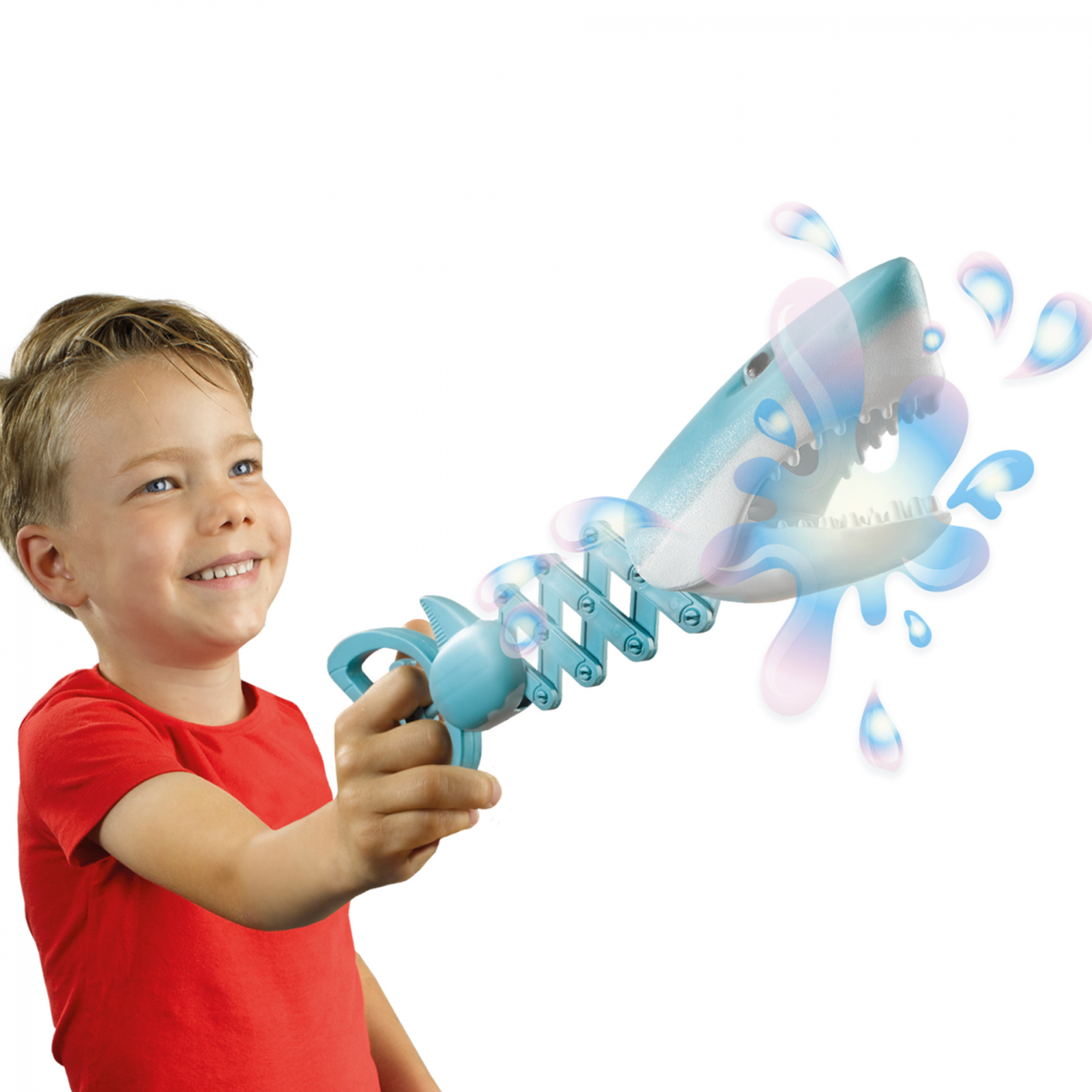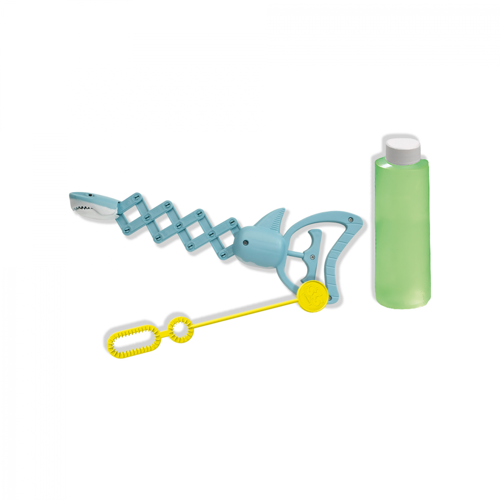 Acest rechin cu gat extensibil musca bule! Ataca si incearca sa prinzi toate baloanele de sapun! Contine: Rechin cu gat extensibil; instrument cu bule; solutie de sapun (200 ml). Dimensiuni: 20 x 20 x 5 cm.