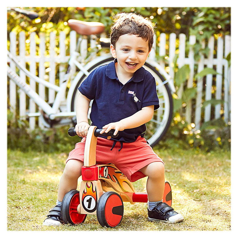Cadrul masiv din lemn, structura triunghiulara si designul stabil o fac potrivita pentru prima bicicleta a bebelusului!