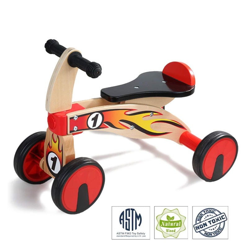 TopBright Bicicleta din lemn fara pedale cu 4 roti, 1-5 ani