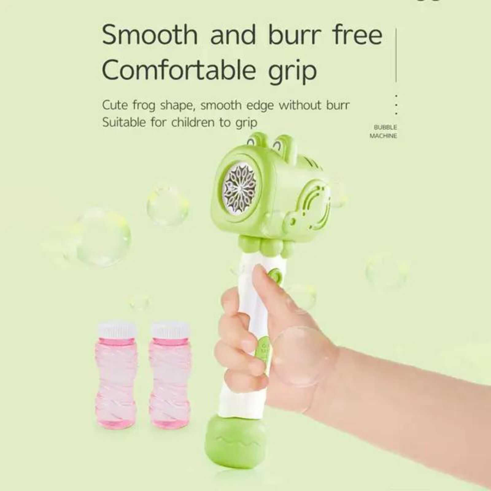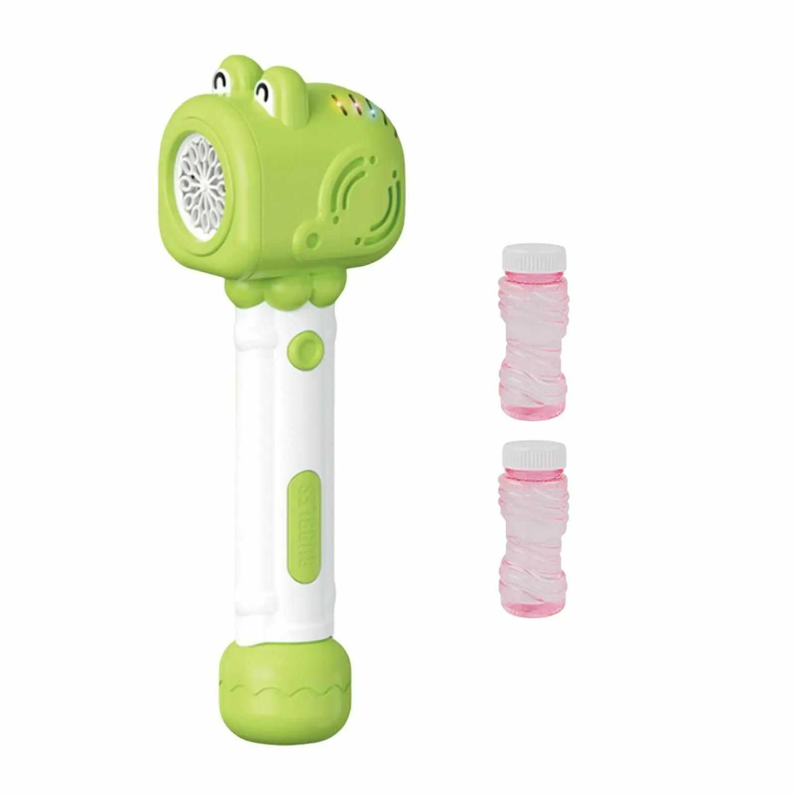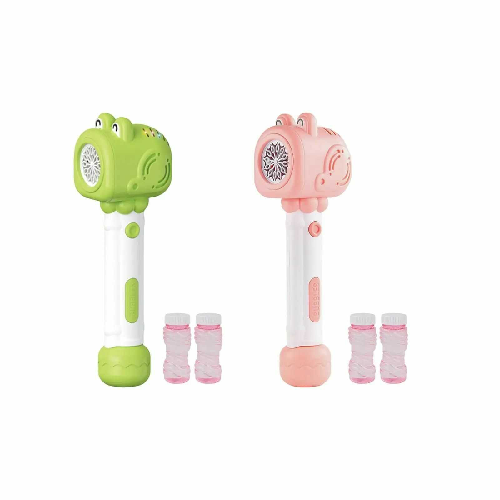 Aparat de facut baloane din sapun, in forma de Bagheta cu bule, Broscuta, pentru copii, lumini si solutie baloane de sapun, 12 orificii, lumini, 30 x 10 cm, 2 variante de culoare: Roz si Verde.