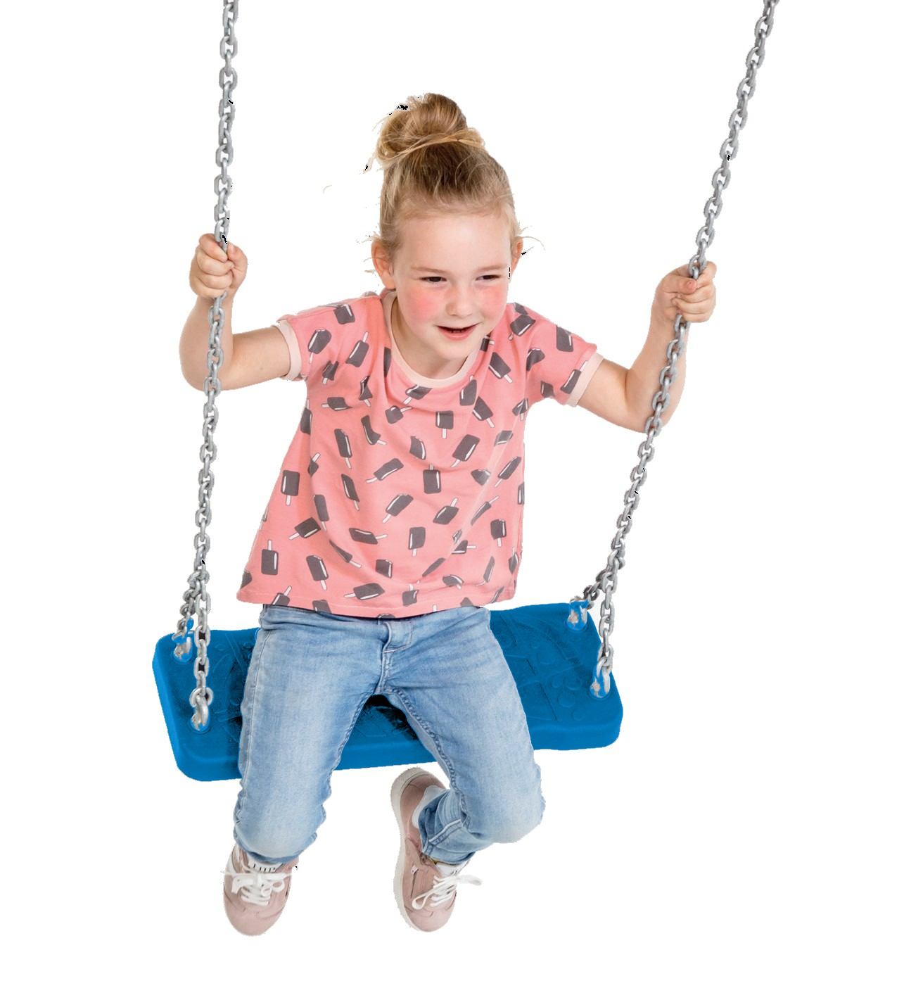 Leagan din cauciuc cu lant albastru Leaganul din cauciuc cu lant are un design unic cu sezut ergonomic si cu dimensiuni mai mari decat leaganele comune. Dimensiuni: 450 x 170 x 5 mm