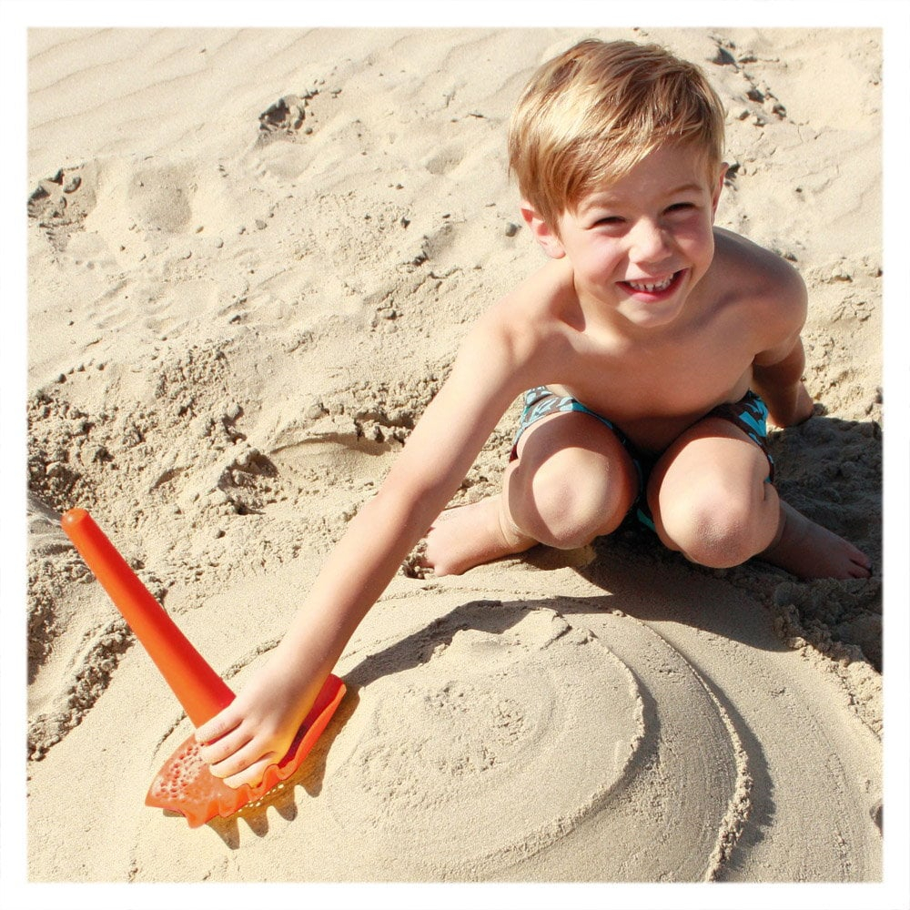 Poate fi utilizata ca lopetica, sita pentru nisip, grebla, stropitoare. Cu ajutorul ei, copiii pot sapa gropi si santuri, pot construi fundatii si sculpta structuri de nisip, pot grebla nisipul si pot crea modele suplimentare, pot cerne nisipul pentru a ajuta la indepartarea cochiilor si a pietricelelor si a obtine un nisip cat mai fin si neted. De asemenea, manerul gol poate fi folosit ca palnie de apa pentru a da o nota artistica si a desavarsi cele mai grozave structuri de nisip de pe plaja.