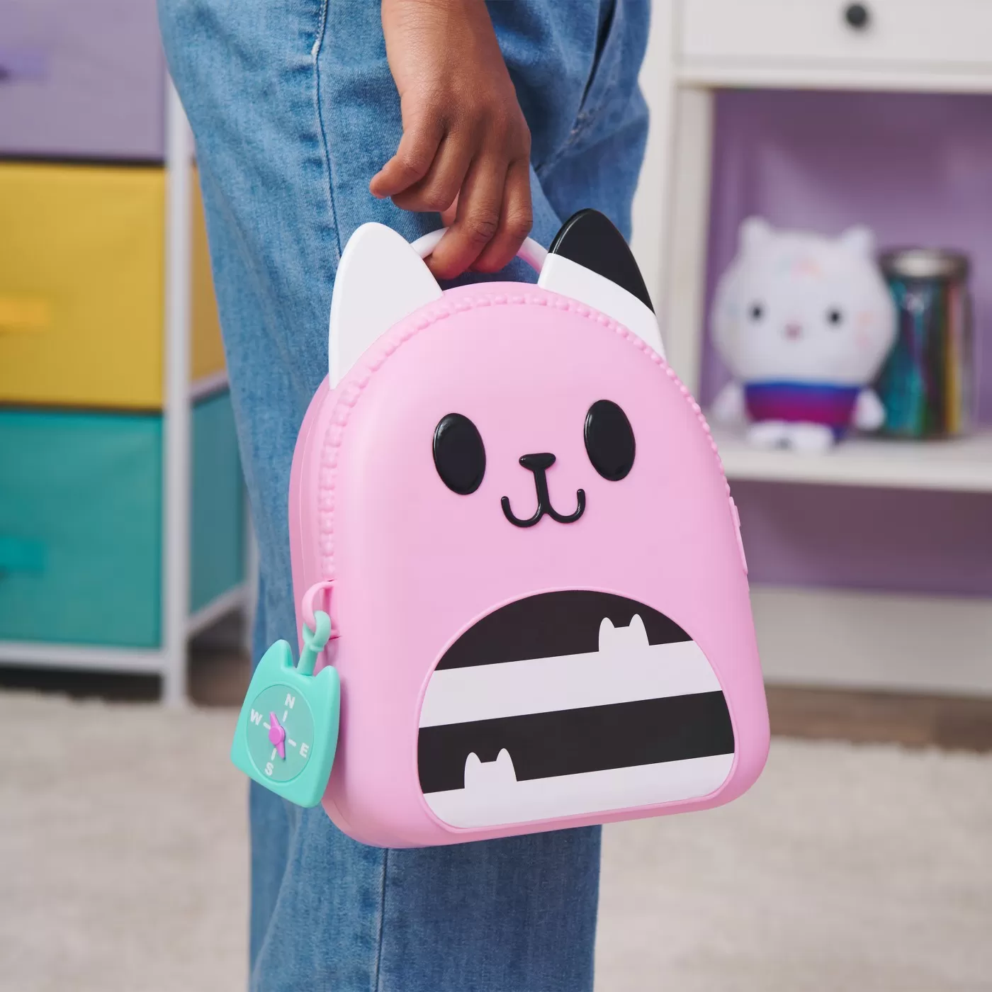 Cu un telefon mobil de jucarie care se pliaza si se deschide pentru a stoca un card de acces pentru pisicuta si o carte de identitate Gabby, un breloc de busola, un portofel de calatorie pentru a tine pasaportul si biletele de calatorie si un recipient de jucarie cu tematica de pisicuta super draguta, cu suporturi speciale pentru a stoca toate jucariile tale minunate de gradinita in interior.
