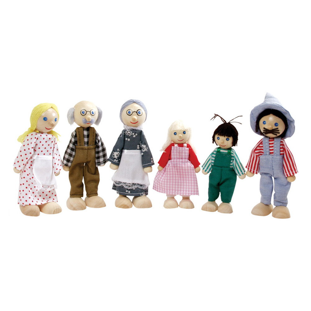 Cu acest set de figurine colorate din lemn, care include o familie completa de papusi, viata in casuta de papusi din lemn va fi mai interesanta, iar jocurile de rol vor deveni si mai distractive.