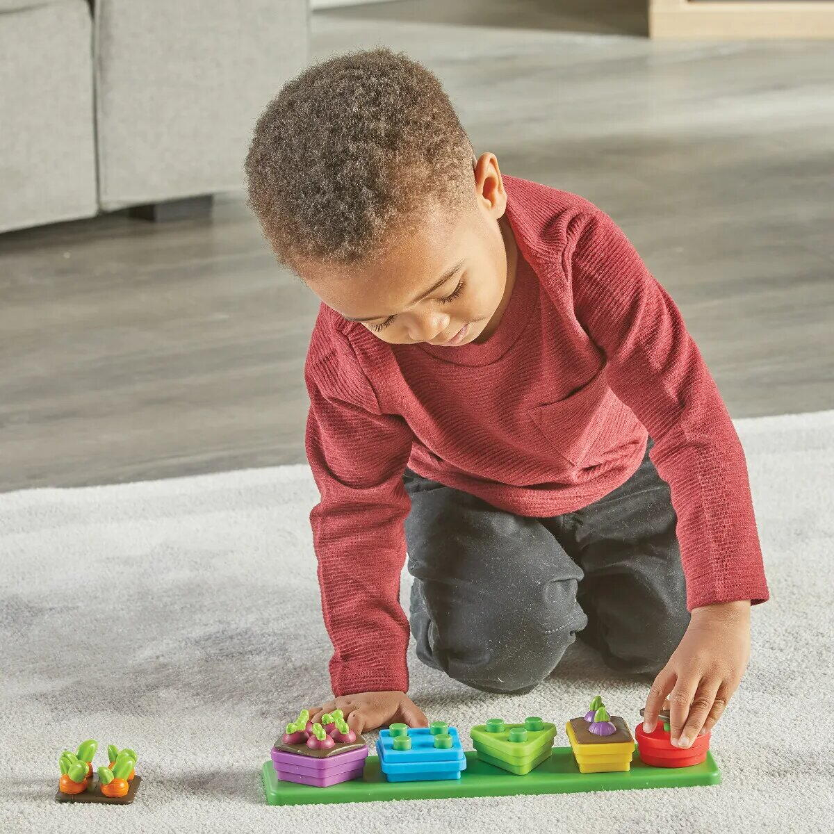 Descopera aceasta gradina care ii ajuta pe micuti sa infloreasca si sa creasca in timp ce descopera forme, culori si numaratul, explorand activitati de invatare pentru prescolari._x000D_ Caracteristici:_x000D_ _x000D_ ia suportul cu pini si potriveste piesele in functie de numarul de gauri _x000D_ cei mici isi dezvolta abilitatile cognitive timpurii, inclusiv recunoasterea formelor si a culorilor, compararea dimensiunilor, numaratul de la 1 la 5 si multe altele, in timp ce sorteaza, stivuiesc si construiesc ghivece pentru legume cu mini-morcovi, usturoi si altele._x000D_ Pe masura ce copiii potrivesc, asaza si stivuiesc formele si plantele, isi dezvolta abilitati motorii fine esentiale, cum ar fi forta de prindere, dexteritatea si coordonarea mana-ochi_x000D_ _x000D_ Setul include:_x000D_ _x000D_ un suport cu pini_x000D_ 20 de piese pentru stivuit_x000D_ ghid de activitati_x000D_ _x000D_ Varsta recomandata: 18 luni+_x000D_ _x000D_ _x000D_ _x000D_ _x000D_ _x000D_ _x000D_ _x000D_ Acest produs nu este un aliment. Este un produs de joacă pentru copii. Indepartati tot ambalajul inainte de a da jucăria copilului dumneavoastră._x000D_ _x000D_ _x000D_ _x000D_ _x000D_  _x000D_ _x000D_ _x000D_ _x000D_