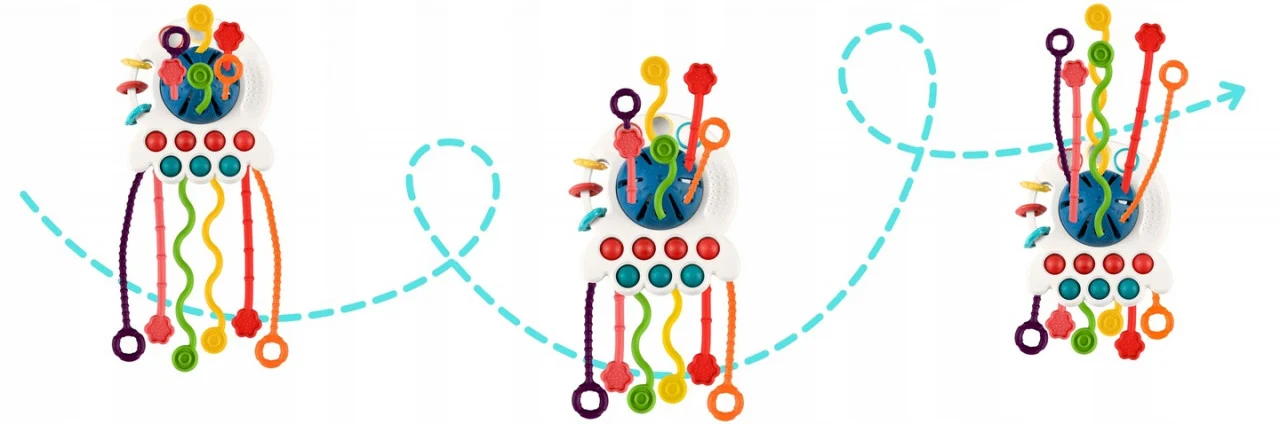 Perfectă pentru perioada dentiției și pentru explorarea timpurie a lumii, Caracatița Veselă este ușor de transportat, fiind alegerea ideală pentru călătorii și plimbări.