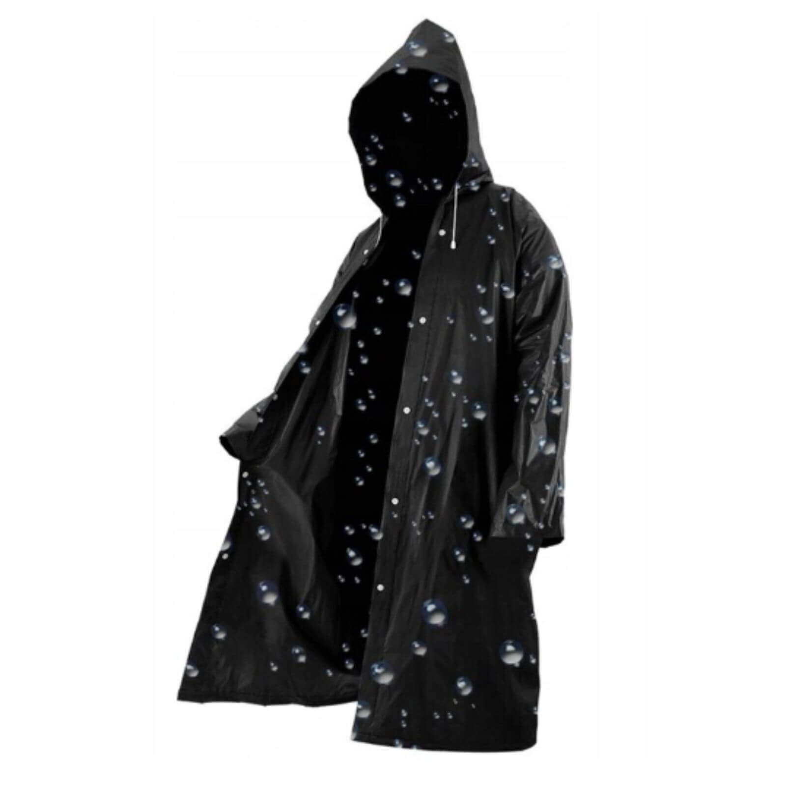 1 x pelerina de ploaie neagra, oversize, cu gluga si capse