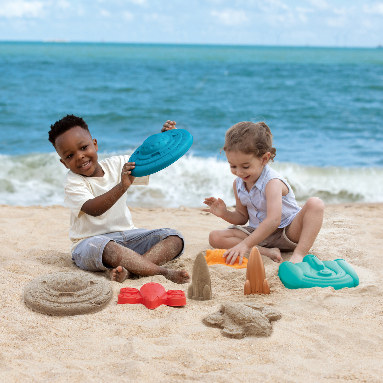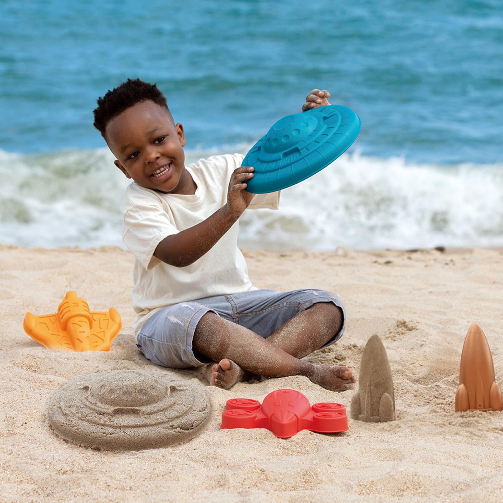 Hape Jucarie de plaja - Set forme nave spatiale, copii varsta 18 luni+,3 ani+,6 ani+