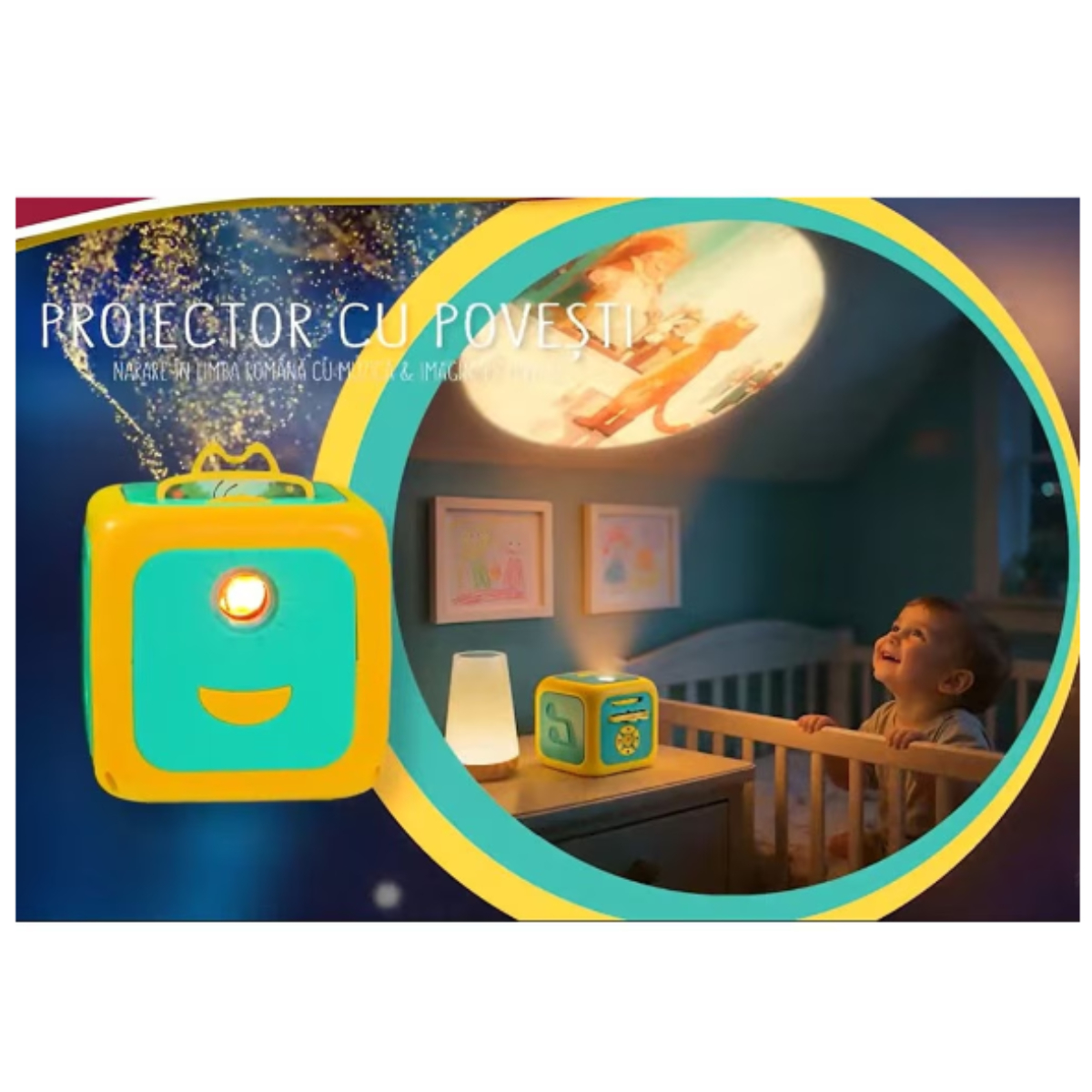 Transforma ora de culcare intr-un moment magic cu Proiectorul cu Povesti – Narare in limba romana, Muzica & Imagini pe perete sau pe tavan!