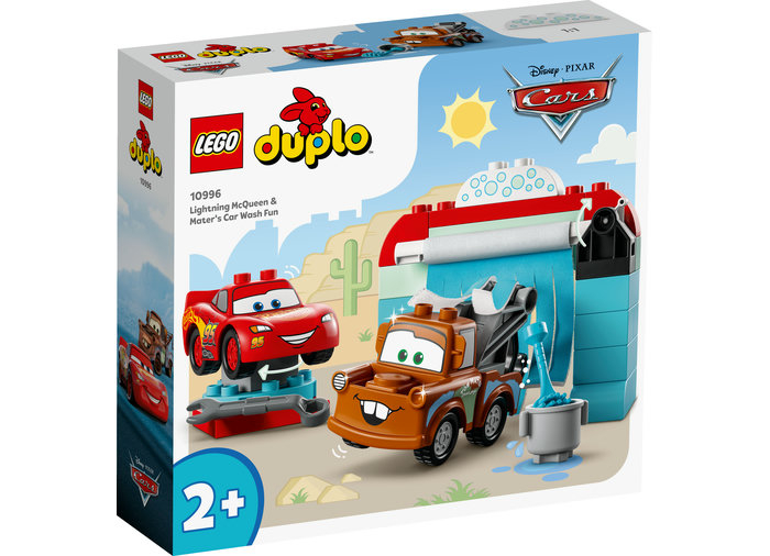 Părinţii şi copiii pot construi împreună vehiculele Fulger McQueen şi pe Bucşă, care pot fi conduse, şi o spălătorie. Cadourile LEGO DUPLO pentru copii sunt jucării construibile minunate pentru mâinile micuţilor şi conţin dotări care stimulează dezvoltarea abilităţilor motorii fine. Setul acesta include un braţ de spălare mobil şi un banc rotativ de tuning unde copiii pot face reparaţii folosind cheia de piuliţe. Copiii îl pot ataşa pe Fulger McQueen de cârligul lui Bucşă pentru a fi tractat. Cei mici creează propriile poveşti cu personaje uşor de recunoscut din populara serie.