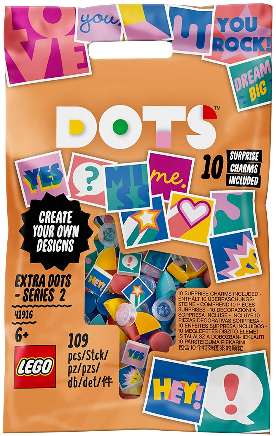 Copiii pasionati de artizanat si lucrul manual vor adora acest pachet cu piese DOTS extra! Gandite pentru a se potrivi cu toate seturile LEGO DOTS, aceste piese extra le ofera copiilor sansa de a-si crea propriile modele si de a le modifica pentru a se potrivi cu tinuta, starea sau decorul din camera lor. Acest pachet incredibil contine 109 placi netede colorate, care includ 20 de piese cu sclipici si 10 placi speciale printate dintr-un sortiment de 16 modele posibile – asadar ce gasesti in fiecare pachet e surpriza! Farmecul acestui set este ocazia de a fi creativ si a lasa imaginatia sa zburde liber. Varietatea de culori si modele iti da voie sa iti personalizezi constructiile DOTS in functie de tinuta sau stare! incurajeaza pasiunea copiilor pentru proiecte DIY cu acest pachet de piese extra, care contine 79 placi in 4 culori, 20 de piese cu sclipici si piese cu 10 modele de print-uri din 16 posibile – ce nimeresti in punga e surpriza!Copiii isi vor dezvolta abilitatile de exprimare atunci cand decoreaza cu aceste placi netede, fie ca urmeaza modelele vazute la diverse jucarii LEGO DOTS, fie ca vin cu idei proprii.DOTS Extra – seria 2 (41916) este un pachet perfect pentru a decora diverse jucarii DOTS sau orice alte seturi LEGO.Fanii DIY sau ai artizanatului si lucrului manual vor adora sa adauge acest pachet la alte seturi pe care le detin. Culorile noi si placile netede decorate sunt super distractive si vor fi un cadou perfect pentru baietii si fetele cu varste de la 6 ani in sus.