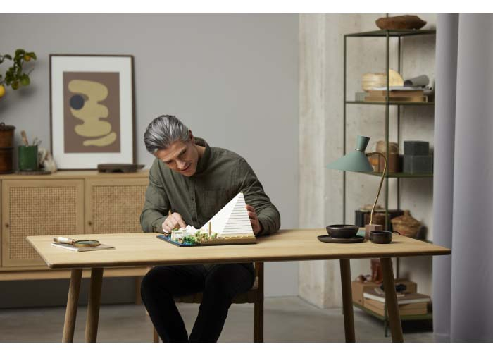 Fă un salt imaginar în timp până în secolul 26 î.Hr. şi trăieşte experienţa construcţiei uneia dintre cele Şapte minuni ale lumii antice, cu acest model LEGO® Architecture Marea Piramidă din Giza (21058). Construieşte un model Marea piramidă în secţiune transversală cu detalii frumoase şi dezvăluie tunelurile şi camerele principale, precum şi sistemul care probabil a fost folosit pentru a muta pietre uriaşe în timpul construcţiei. Vizualizează zona din jurul fluviului Nil aşa cum se presupune că ar fi arătat în antichitate, cu 2 piramide mici, 2 temple mortuare, statuile Sfinxului, un obelisc şi altele.