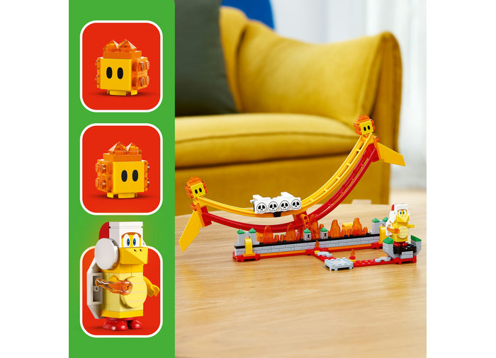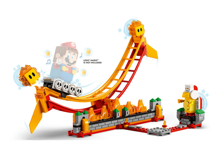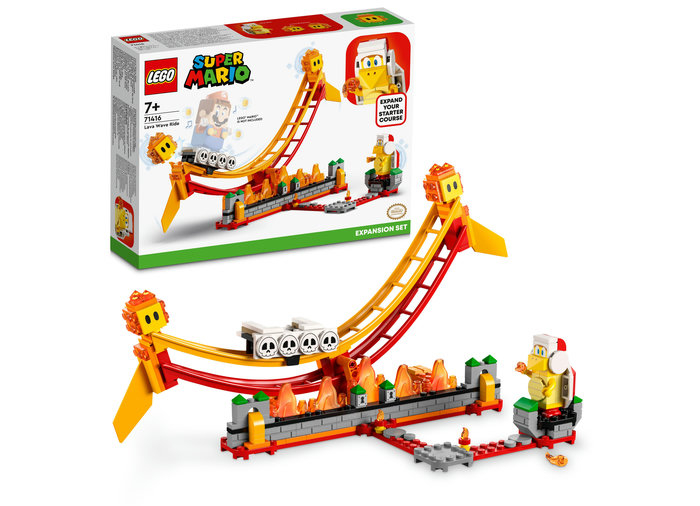 Copiii pot crea un nivel roşu şi fierbinte în universul lor LEGO® Super Mario™ cu Setul de extindere Plimbare pe valul de lavă (71416). Acesta conţine un val de lavă care se balansează, un Lava Lift în care să urce o figurină LEGO® Mario™, LEGO® Luigi™ sau LEGO® Peach™ (neincluse). Jucătorii câştigă monede digitale dacă se menţin pe valul mişcător şi dacă înfrâng cele 2 Bule de lavă de la fiecare capăt. Setul îl include şi pe Fratele Piro, care trebuie şi el învins, şi este ideal pentru joaca socială.