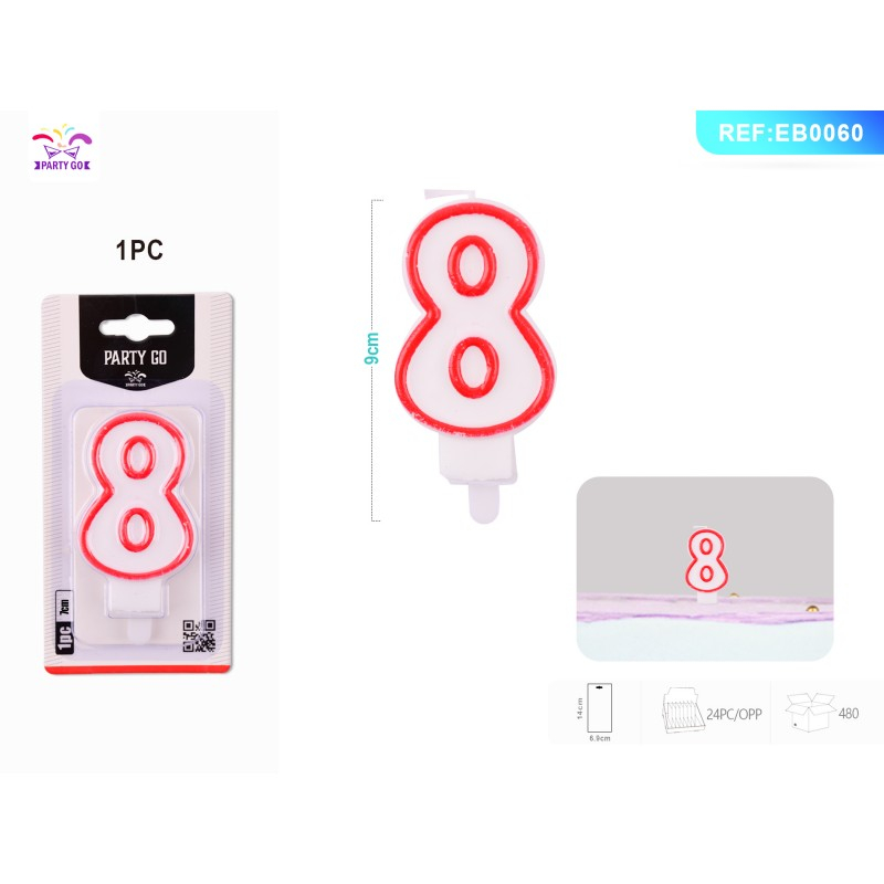 Lumanari aniversare pentru tort PartyGo cifra 8, 7cm, rosu, EB0060