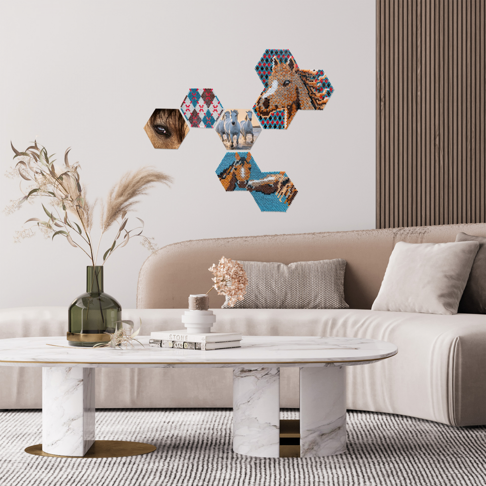 Amestecul unic de placi de margele hexagonale de casa, combinate cu placi foto, creeaza un mozaic frumos si modern pentru casa. Aranjati placile dupa cum doriti. Mozaicul poate fi realizat pentru a se potrivi cu orice perete, fie ca este un hol ingust sau un perete larg deasupra canapelei. Setul contine trei placi de margele de calcat hexagonal si margele de calcat intr-un amestec de culori care se potriveste cu tema. Prin asezarea modelelor pe cardul sablon mare, puteti realiza cu usurinta toate placile de margele de calcat. Pe langa margele de calcat, setul contine si doua placi de spuma si autocolante tematice pentru crearea placilor foto. Aranjand impreuna placile de margele termoformate hexagonale si placile foto, puteti crea un mozaic unic si modern. Sfat: creand un model suplimentar sau adaugand propriile fotografii, puteti continua sa extindeti mozaicul. Dimensiuni: 30 x 20 x 6 cm.