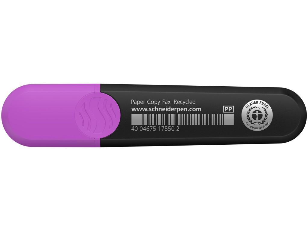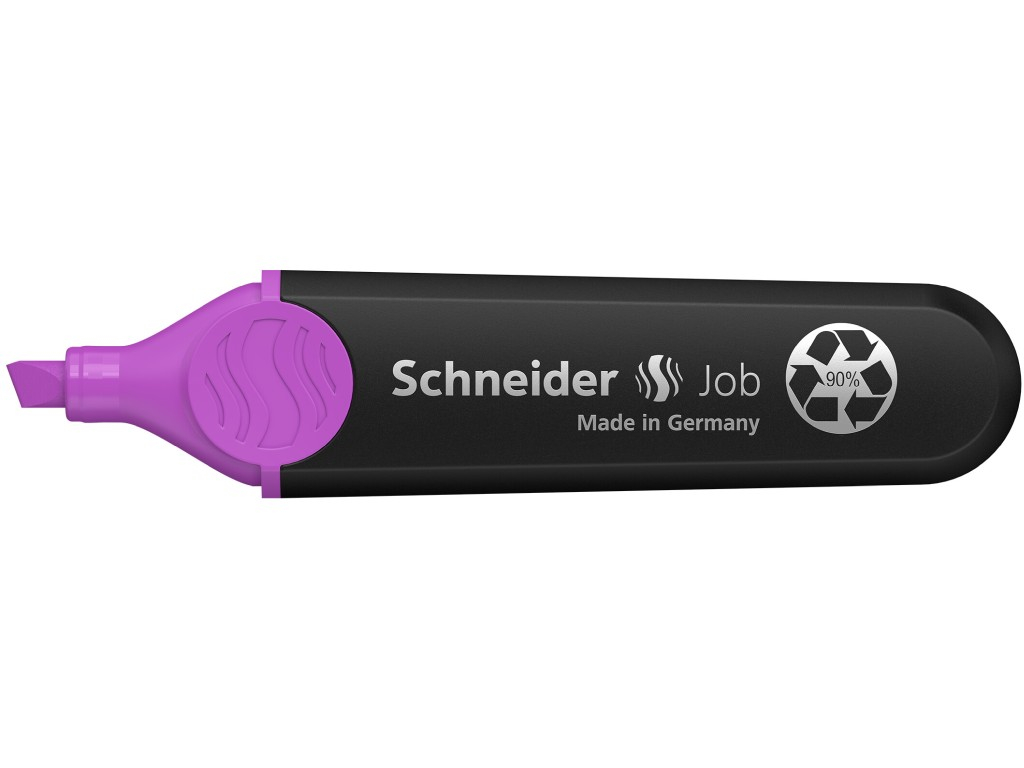 Textmarker Schneider Job pe bază de cerneală cu strălucire maximă și rezistență la lumină pe hârtie standard, de copiator și de fax. Corp din polipropilenă, complet reciclabil. Capacul are clip de prindere.