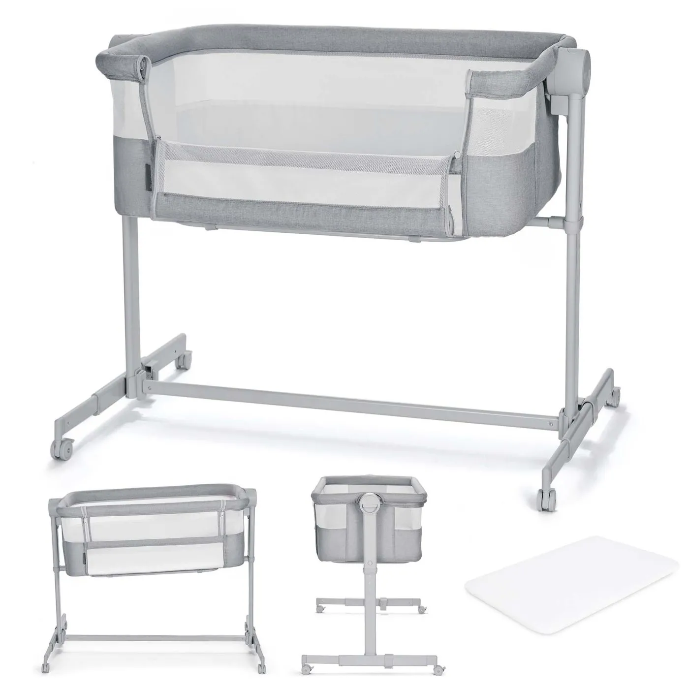 Patut atasabil 2 in 1 Kinderkraft NESTE UP 2, full light grey Iata solutia pentru fiecare parinte de nou-nascut KINDERKRAFT NESTE UP 2full light grey este mai mult decat un simplu patut atasabil. Este si un patut independent pentru bebelusi, care, in caz de nevoie inlocuieste patutul de calatorie. KINDERKRAFT NESTE UP 2full light grey a fost creat cugandul la parintii care vor sa il aiba pe cel mic aproape, avand in acelasi timp grija de confortul si calitatea propriului somn. Îl vei transforma cu usurinta pe KINDERKRAFT NESTE UP 2full light grey dintr-un patut atasabil intr-unul independent si invers. Acest patut atasabil multifunctional are 5 niveluri de inaltime, astfel ca il vei regla cu usurinta la inaltimea patului tau. Este posibila si reglarea inclinarii saltelei pe 2 niveluri - aceasta optiune este perfecta pentru bebelusii care au reflux sau sunt bolnavi si le curge nasul. Plasa dimprejurul intregului patut va permite sa il urmariti discret pe copil si sa vedeti ce face, iar datorita celor 4 roti il vei muta cu usurinta pe KINDERKRAFT NESTE UP 2full light grey dintr-un loc in altul. În plus, patutul este livrat impreuna cu o saltea care are grosimea si densitatea optime, recomandate pentru bebelusi - asigura pozitionarea adecvata a corpului copilului si are o actiune pozitiva asupra dezvoltarii lui, iar suplimentar este rezistenta la mucegai si acarieni Patutul 2 in 1 patut pentru bebelusi si patut atasabil KINDERKRAFT NESTE UP 2full light grey este un patut multifunctional, care se foloseste atat ca patut independent pentru bebelusi, cat si ca patut atasabil la patul parintilor. Datorita celor patru roti cu frana, patutul poate fi mutat usor prin casa, lucru care le permite parintilor sa fie mereu aproape de copil si sa il supravegheze. Aceasta solutie asigura confort, siguranta si flexibilitate, permitand adaptarea usoara la diverse situatii, de la somnul nocturn alaturi de parinti pana la puiul de somn din timpul zilei, in orice loc al casei. Adaptare perfecta Reglarea lina si simpla a inaltimii lui KINDERKRAFT NESTE UP 2full light grey permite adaptarea cu usurinta a patutului atasabil la inaltimea patului parintilor. Aseaza-l pe unul dintre cele 5 niveluri, regleaza distanta picioarelor astfel incat patutul sa fie bine lipit de patul parintilor si fixeaza-l cu curelele speciale pentru a-i crea copilului un spatiu de dormit sigur. Vei avea in continuare spatiu pentru tine si te vei bucura de un somn de calitate, iar copilul va fi mereu aproape. Saltea comoda inclusa Setul include o saltea semi-tare, recomandata de fizioterapeuti pentru ca datorita ei copilul doarme mai bine si are un efect benefic pentru dezvoltarea din timpul somnului, asigurandu-i copilului sprijinul adecvat pentru coloana si cap. Datorita umpluturii speciale din fibre presate, salteaua este rezistenta la umiditate, mucegai si acarieni. Salteaua vine impreuna cu un cearsaf care se poate spala in masina de spalat. Reglarea unghiul de inclinare pe 2 niveluri Unghiul de inclinare a saltelei se poate regla pe 2 niveluri diferite. Daca cel mic este racit sau are probleme de reflux si vrei sa ii usurezi respiratia in timpul noptii, trebuie doar sa asezi partea superioara a saltelei putin mai sus. Îl vezi mereu pe copil Plasa care inconjoara patutul din fiecare parte asigura o mai buna circulatie a aerului pentru cel mic si iti permite in acelasi timp sa supraveghezi discret situatia atunci cand iti desfasori activitatile zilnice. Universal si elegant Patutul pentru copii KINDERKRAFT NESTE UP 2full light grey se evidentiaza prin materialul placut la atingere si usor de curatat. A fost proiectat sa se potriveasca ideal fiecarui interior - se va asorta fiecarei incaperi. Culorile la moda sunt potrivite pentru majoritatea interioarelor decorate in diverse stiluri. Constructie Materiale tesatura poliester usor de curatat cadru otel rezistent Pentru varsta de la nastere pana cand copilul incepe sa stea singur in sezut