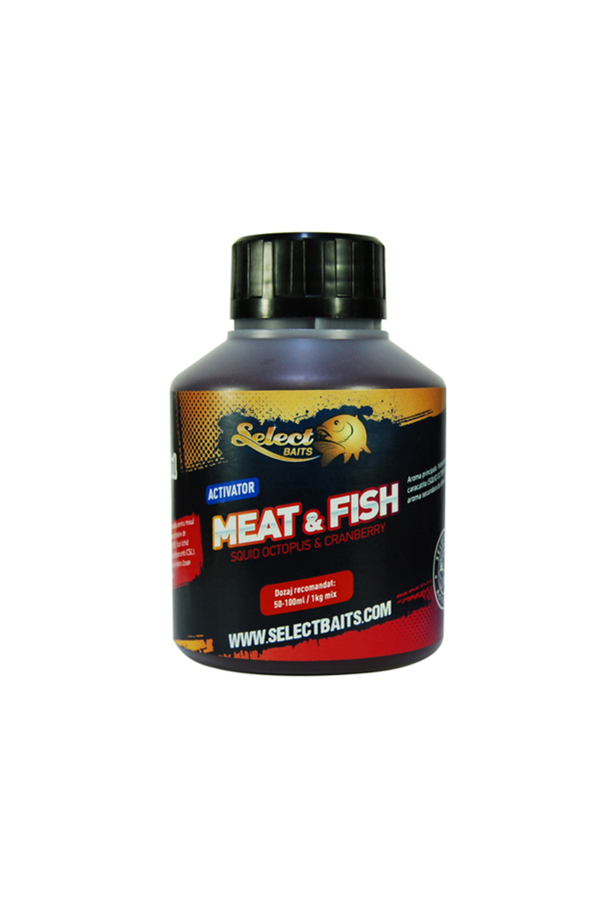 MEAT & FISH Activator este partea lichida recomandata pentru mixul MEAT & FISH in formula pe care o folosim la Select Baits. Gratie compozitiei sale extrem de bogate puteti combina acest produs cu orice mix pe baza de fainuri de peste si carne. Ne-am bucura sa il folositi cu mixul pentru care l-am conceput dar adevarul este ca l-am testat si cu alte mixuri si merge perfect. Toate ingredientele necesare sunt incluse. Folosind o parte lichida gata facuta aveti garantia unei retete de calitate economisiti bani si nu ramaneti cu fractii ca in cazul produselor cumparate separat. MEAT & FISH Activator contine o serie de lichide nutritive printre care RED SPICE (complex lichid de condimente) LIQUID LIVER (ficat lichid) CSL (extract nealcoolic de porumb) L030 (proteina solubila de peste) si drojdie lichida. De asemenea contine indulcitorul natural THAUMATIN. Aromele folosite sunt SQUID & OCTOPUS in combinatie cu CRANBERRY. Dozaj recomandat 75-100ml/kg de mix. Citit pe Carponline AICI o recenzie despre boiliesurile Meat & Fish scrisa de Vlad Pavlovici