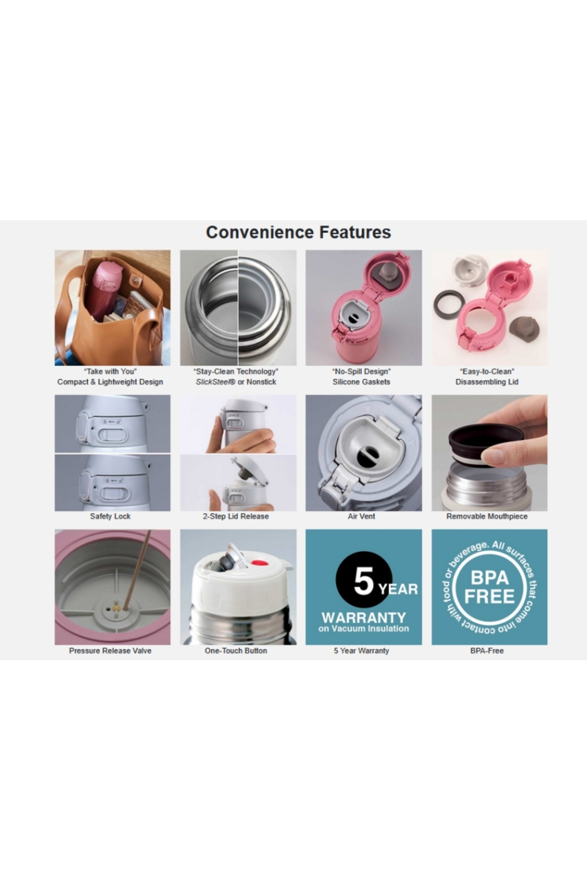 Zojirushi este un brand japonez renumit la nivel mondial cu o istorie care incepe in 1918 cand compania a debutat ca producator de termosuri vidate. De peste un secol Zojirushi a devenit sinonim cu tehnologia avansata de izolare termica calitatea superioara si durabilitatea produselor sale. Termosurile si canile Zojirushi sunt apreciate pentru capacitatea lor exceptionala de a mentine bauturile calde sau reci pentru perioade indelungate datorita peretilor subtiri din otel inoxidabil izolatiei vidate de inalta performanta si designului functional gandit pentru utilizare zilnica. Brandul continua sa fie un lider global in inovatie oferind produse care imbina traditia japoneza a meticulozitatii cu tehnologiile moderne transformand fiecare termos intr-un standard al excelentei. Seria de termosuri de la Zojirushi. In natura in calatorii la birou - ele isi vor gasi mereu locul oriunde. O forma convenabila pentru soferi dimensiuni compacte pentru geanta sau rucsac si un design elegant pentru birou. Iar cel mai important - functionalitate excelenta. Ca toate produsele companiei seria Mugs respecta cele mai inalte standarde de calitate. Termosurile un spațiu de vid de 1 mm in flaconul metalic. Peretii sunt realizati din otel de inalta calitate cu grosime redusa. Acest lucru a facut produsul mai usor si mai compact fara a compromite capacitatea de a mentine temperatura. Atasamentul din plastic de pe gat protejeaza pielea delicata a buzelor de arsuri atunci cand bei bauturi fierbinti. Capacul are un buton care poate fi identificat intuitiv cu degetul mare permitand deschiderea si inchiderea termosului cu o singura mana. Blocatorul - o incuietoare speciala - previne deschiderea accidentala in timpul transportului. Nu contine Bisfenol A (BPA Free). Produsele sunt concepute in Japonia si sunt fabricate in Thailanda in fabrica Zojirushi. Respecta cele mai inalte standarde de calitate ale producatorului nipon. SPECIFICATII: *Capacitate: 0.48L *Dimensiuni: 8.89 x 8.89 x 21.91 cm *Pastrare la cald: 81.11°C timp de o ora - 56.11°C timp de 6 ore. (Evaluarea se bazeaza pe apa cu temperatura initiala de 95°C la o temperatura ambientala de 20°C) *Pastrare la rece: 10°C timp de 6 ore. (Evaluarea se bazeaza pe apa cu temperatura initiala de 4°C la o temperatura ambientala de 20°C)