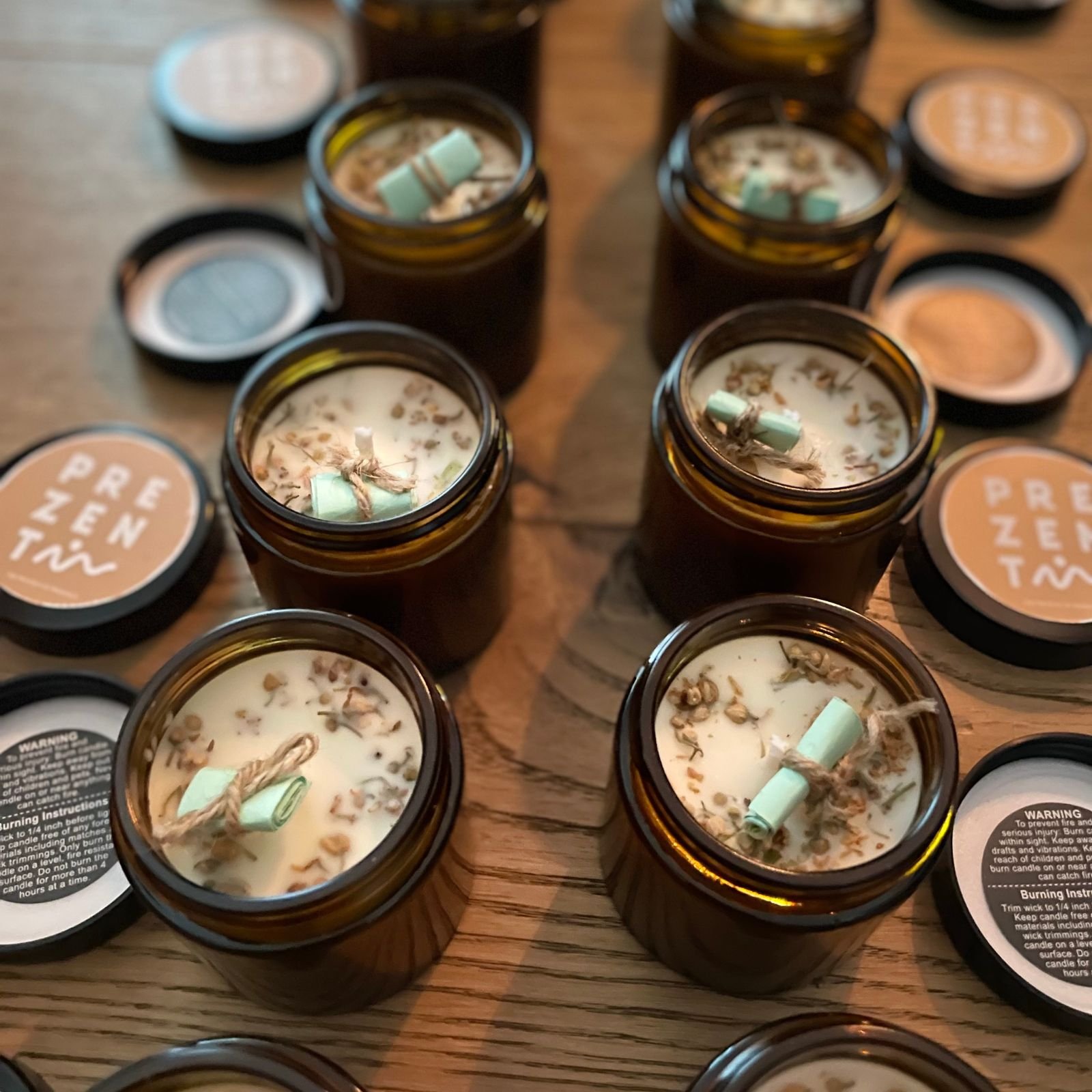 Lumânare din ceară naturală de soia, cu un parfum autentic de flori de tei, turnată manual în România pentru o experiență unică de relaxare.