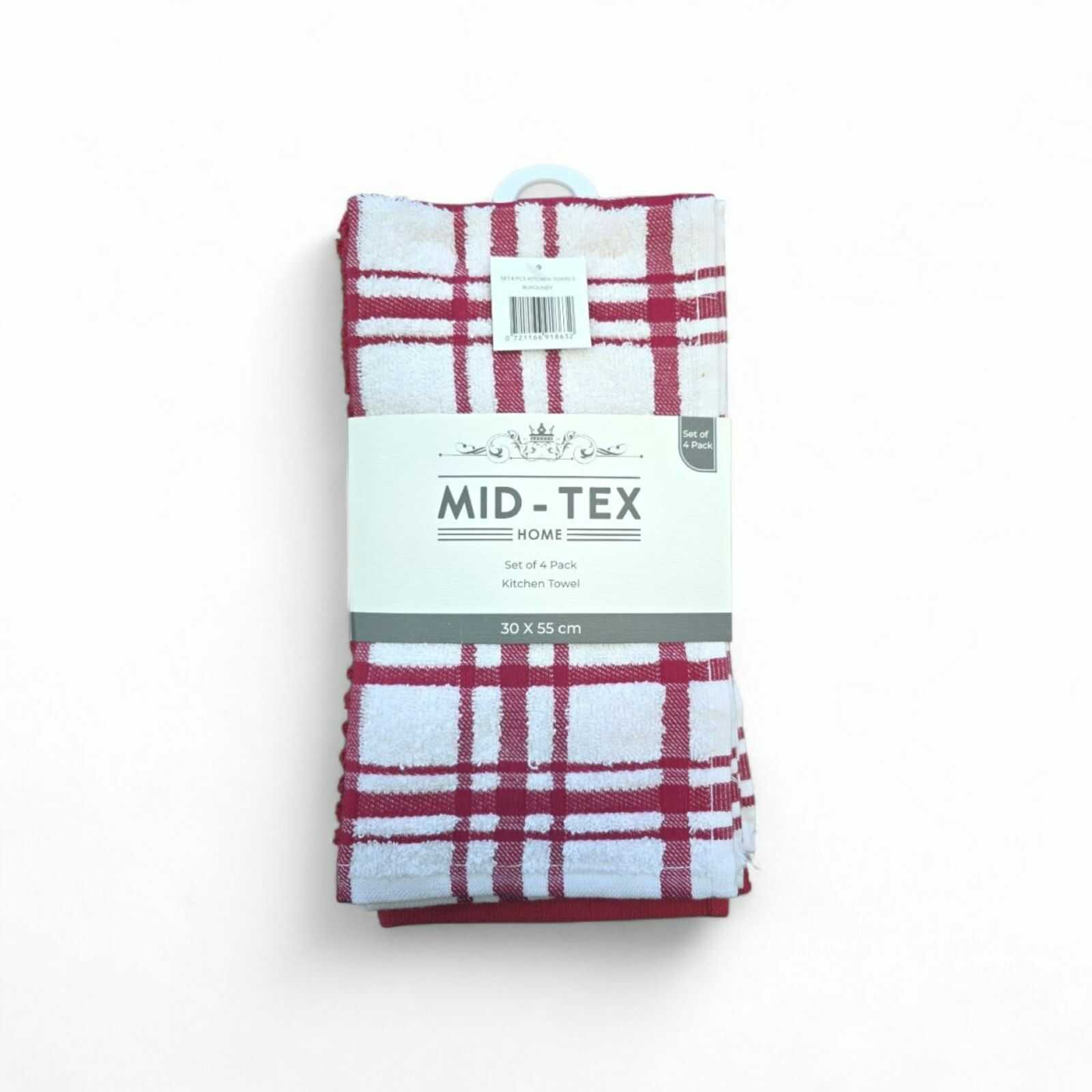 Setul contine 4 prosoape de bucatarie, fiecare avand un model diferit in aceeasi culoare wine.