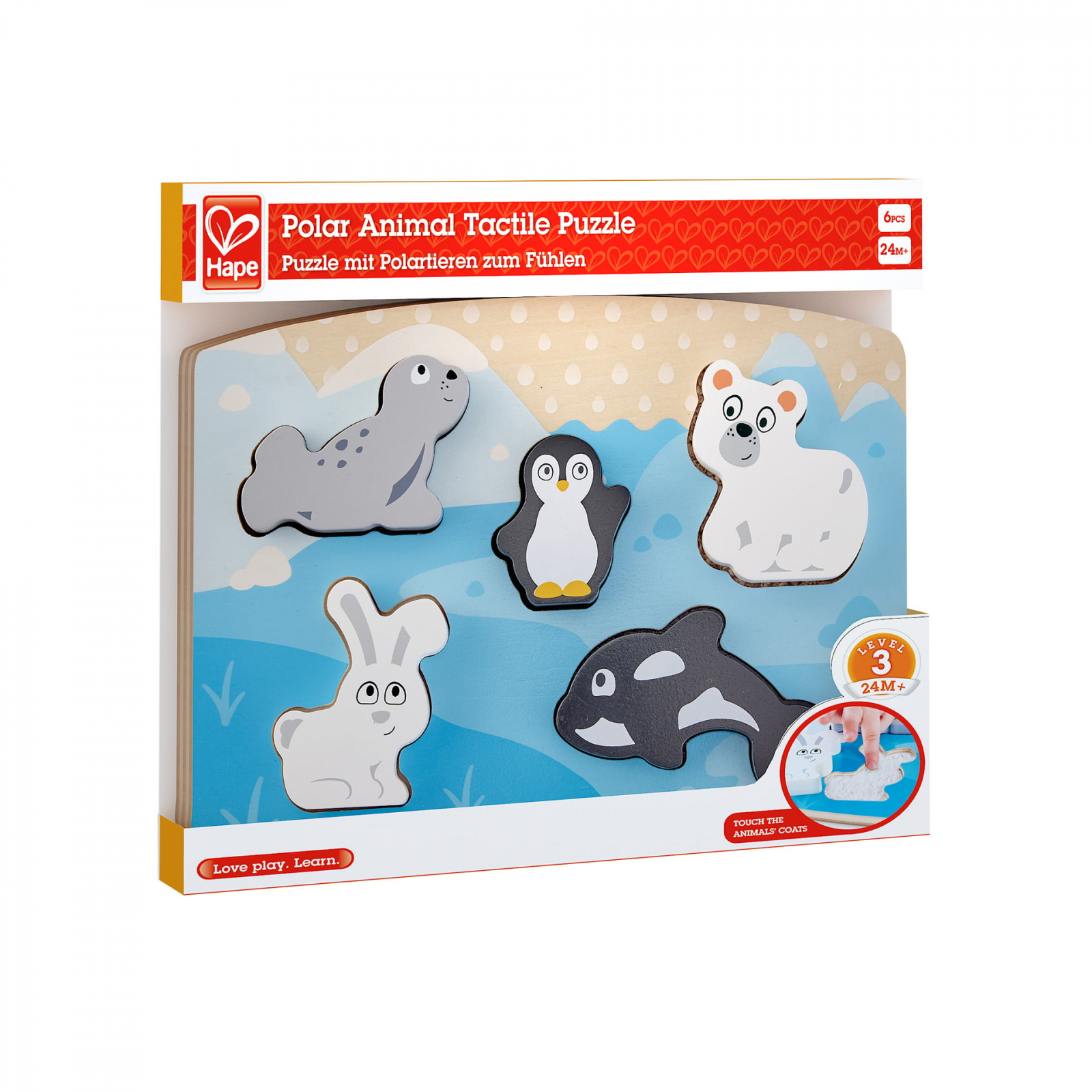 Hape Puzzle din lemn tactil - Animale polare, copii varsta 2 ani+