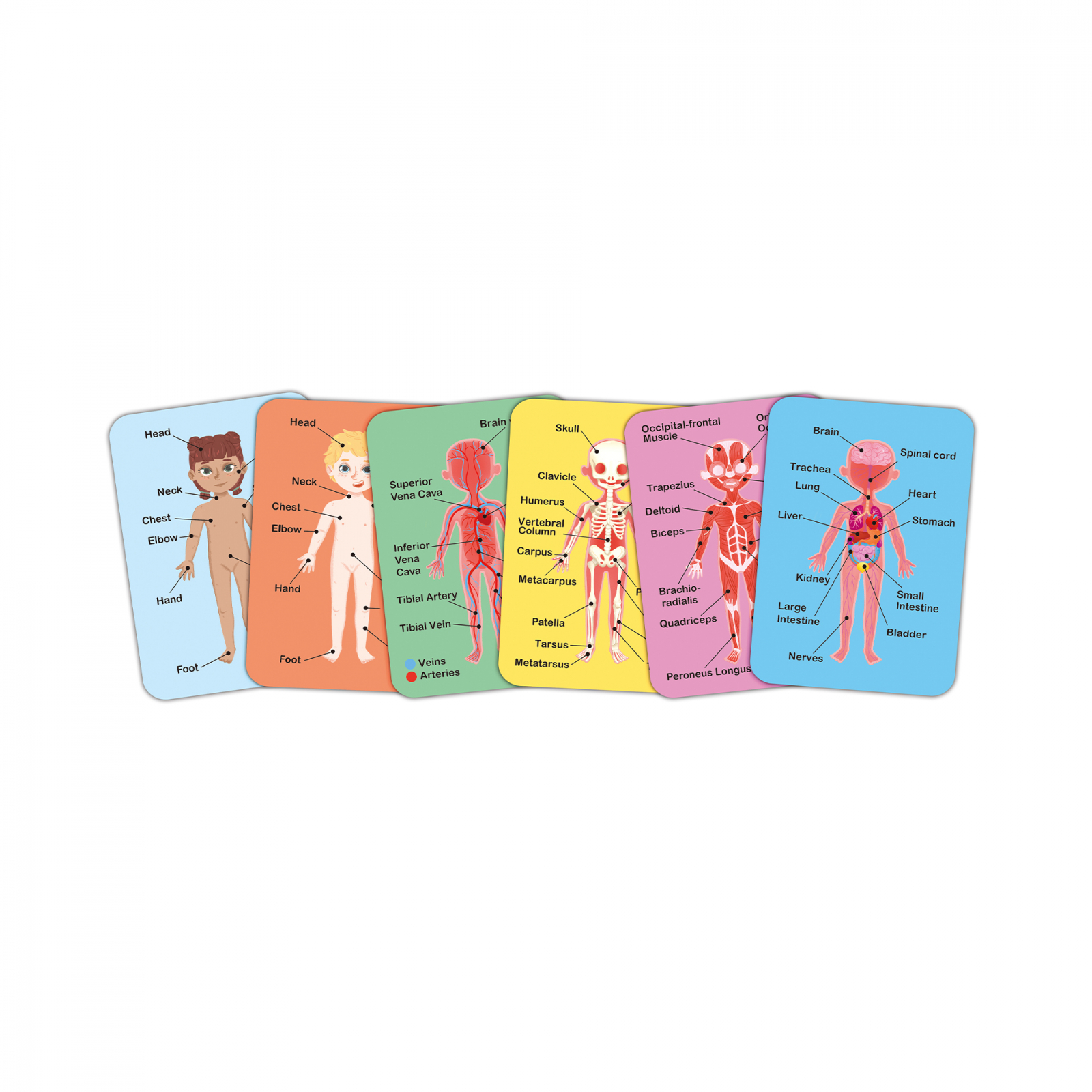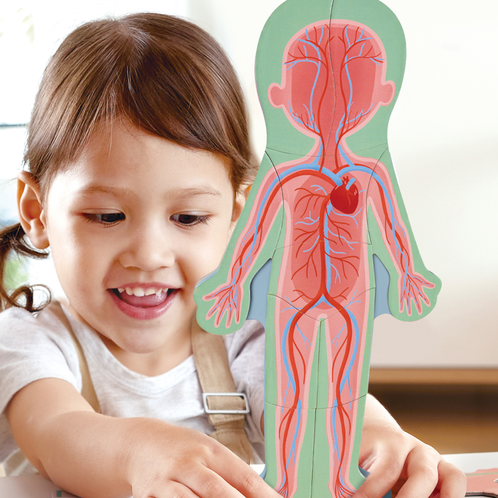 In acest set de 63 de piese este inclusa o baza din lemn, un contur al corpului cu magneti pentru corp de baiat si fetita, un schelet, un sistem circulator, un sistem muscular, un sistem nervos cu organe si sase carti de corp uman cu doua fete. Acest set incurajeaza dezvoltarea copilului dumneavoastra in diverse abilitati de stiinta, tehnologie, inginerie, arta si matematica, inclusiv coordonarea ochi-mana, abilitatile motorii fine si rezolvarea problemelor. Cele sase carduri pentru corpul uman ii ajuta sa-i invete pe copii despre diferitele sisteme din corpul uman si despre cum sa le identifice. Copiii pot invata sa recunoasca diferitele straturi si parti ale corpului pe masura ce potrivesc partile corecte ale corpului pe corpul magnetic folosind cele sase puzzle-uri. Baza durabila din lemn a acestui puzzle si suportul magnetic puternic vor rezista ore intregi de joc. Incurajati jocul imaginativ prefacandu-va ca sunteti doctori cu copilul dumneavoastra. Ei pot folosi piesele magnetice ale puzzle-ului pentru a „diagnostica” si „trata” pacientul. Dimensiuni cutie: L: 29, l: 4, H: 18 cm.