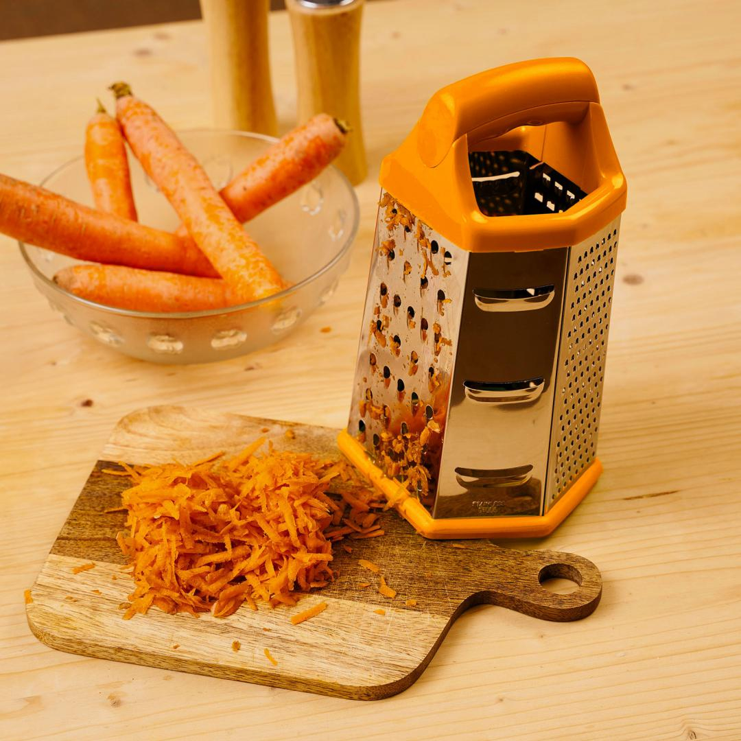 RAZATOARE 6 LATURI,14X12X23 CM, PORTOCALIU; material: inox cu maner plastic, baza silicon