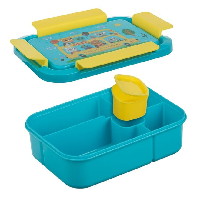 Cu un design vesel, colorat in turcoaz cu detalii galbene si model cu animale, caserola ii va incanta pe copii si ii va incuraja sa manance mai variat si mai sanatos.