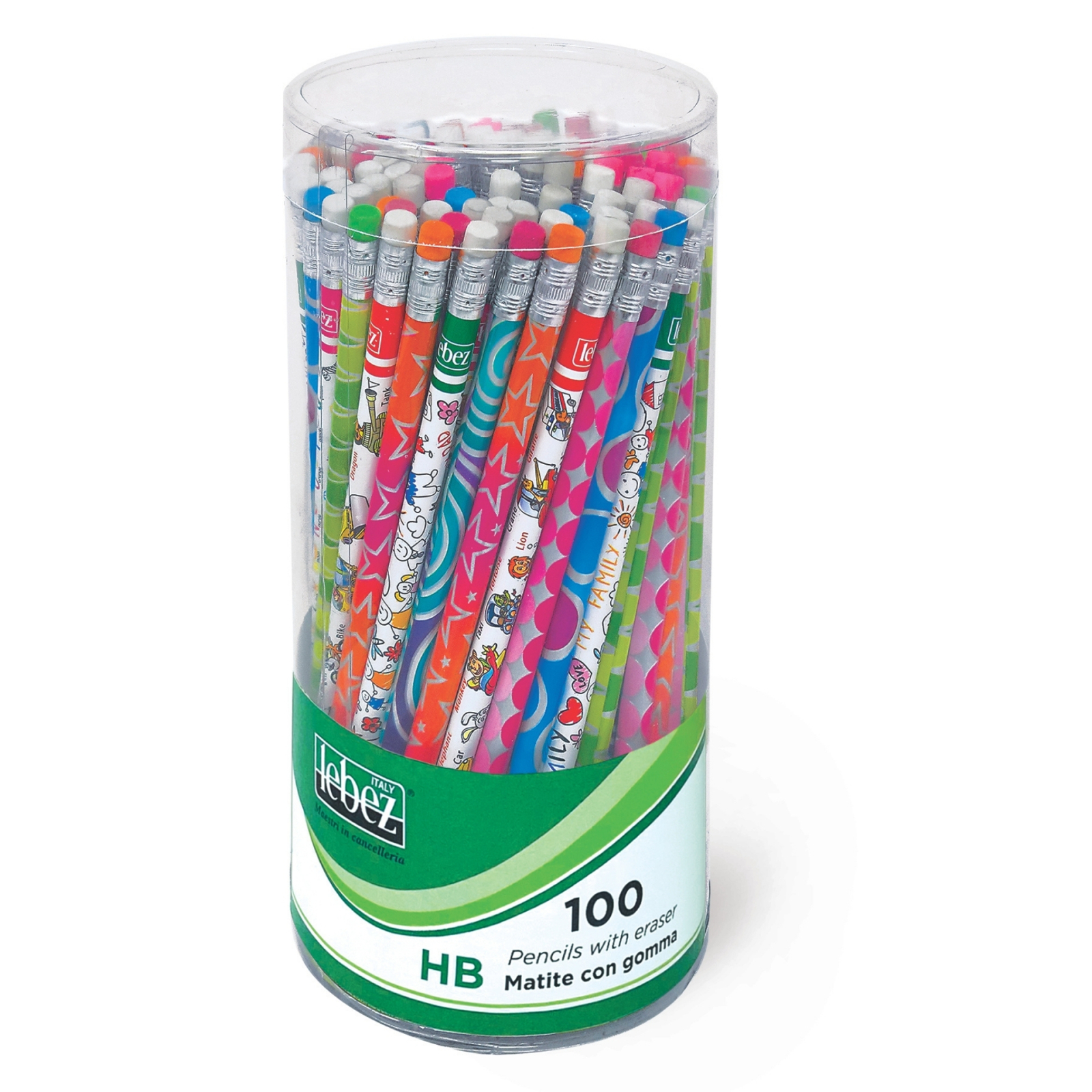 Modele, culori si tematici diferite. Descopera eleganta si performanta in scris cu creionul grafit cu radiera. Acest set generos contine 100 de creioane, fiecare fiind un partener de incredere pentru orice sarcina de scriere sau desen._x000D_ Dimensiuni creion: ø 8 mm._x000D_ _x000D_ Dimensiuni borcan: 10 x h. 20 cm._x000D_ _x000D_ ATENTIE! Pretul afisat este pentru o bucata, numarul de bucati/display este informativ.