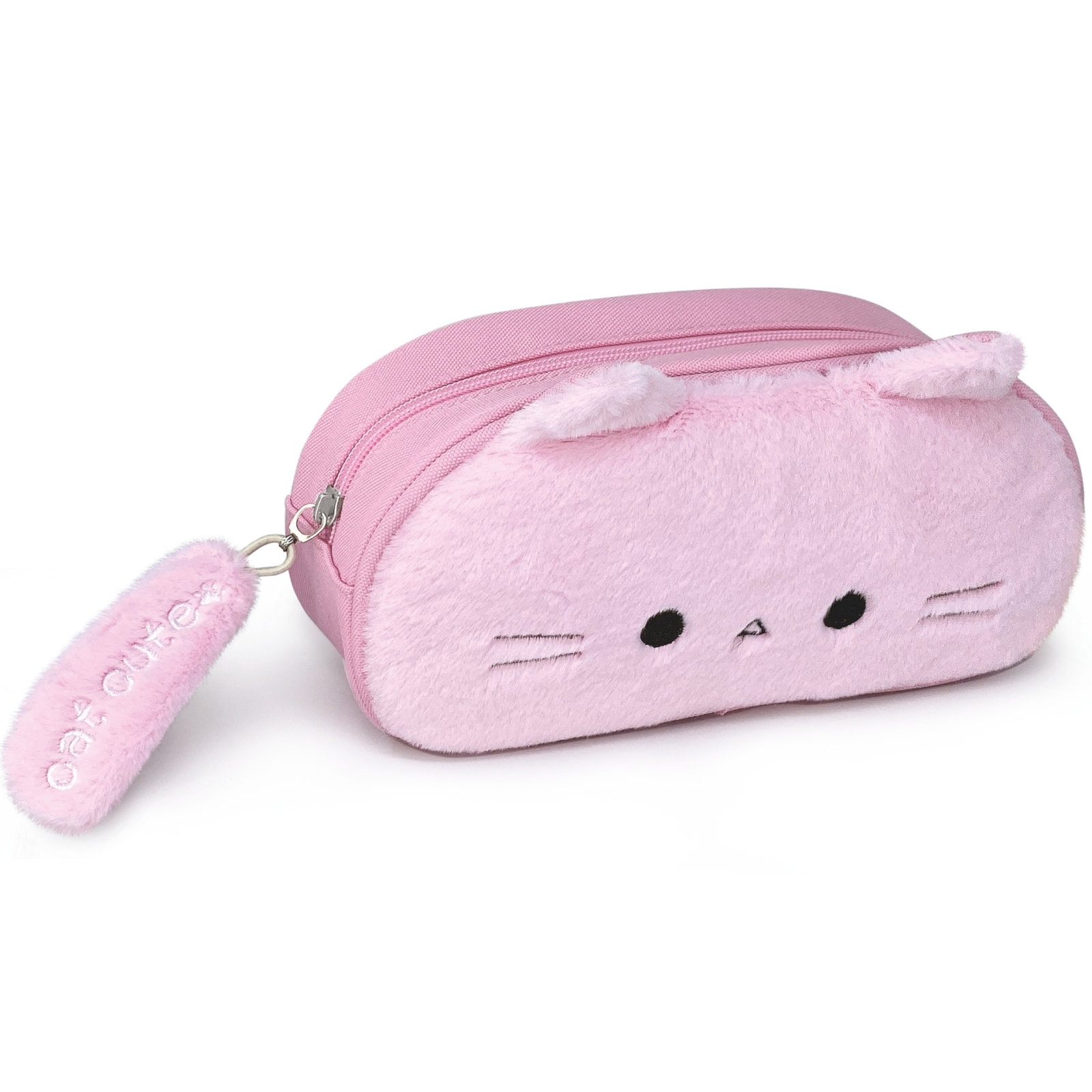 Penar tip borseta cu aplicatii din plus, disponibil in 3 culori asortate, cu design adorabil Cute Cat._x000D_