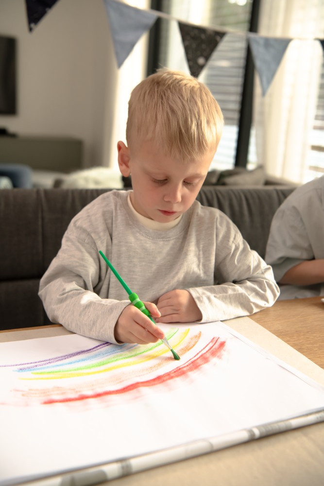Set 4 pensule cu zonă grip moale, culori atractive. Păr sintetic colorat. Setul conține pensulele cele mai recomandate la școală: 2, 6, 10 (rotunde) și 12 (teșit).