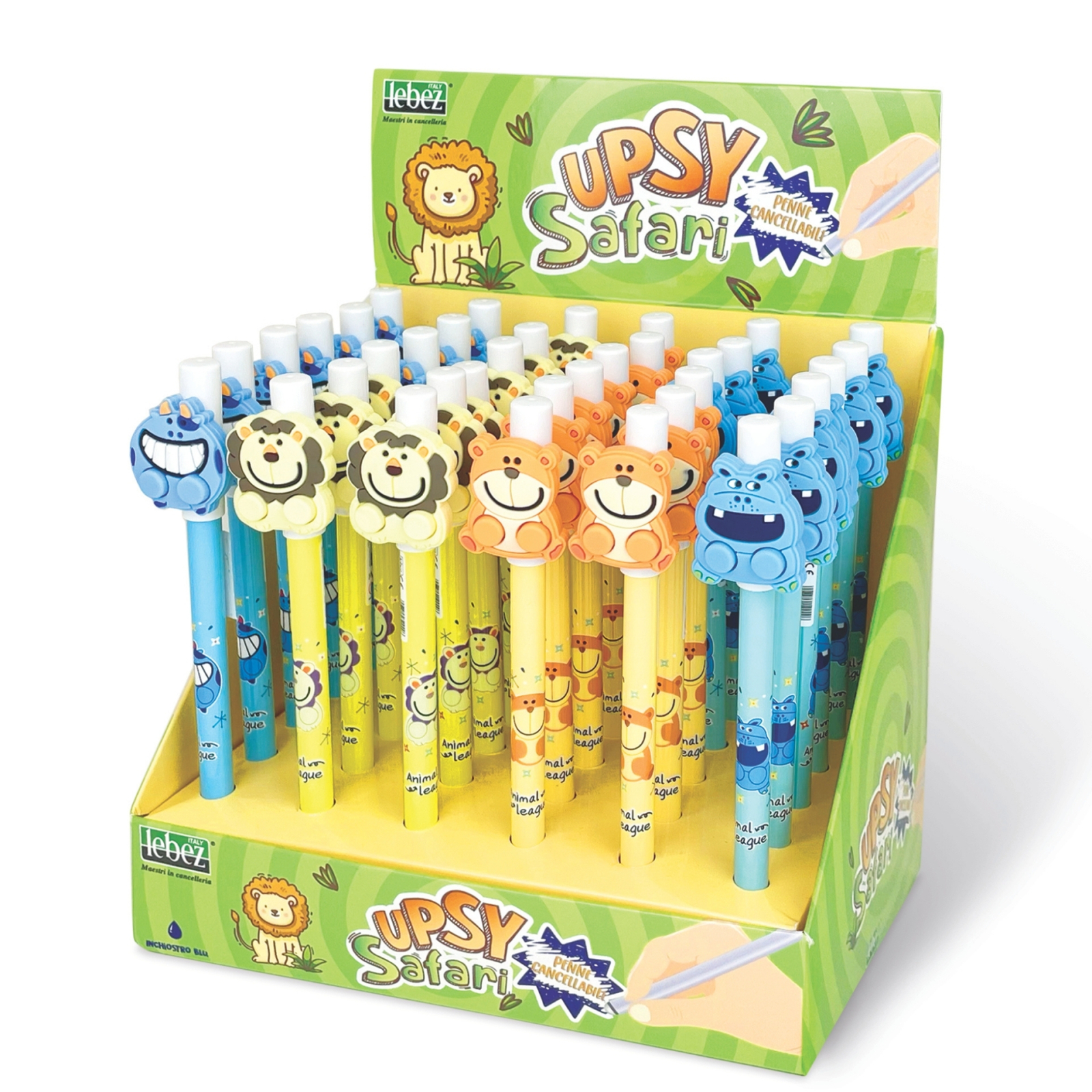 Pix care se sterge cu capac, Upsy Safari, 4 modele (36 buc/display), copii varsta 3 ani+,6 ani+,8 ani+