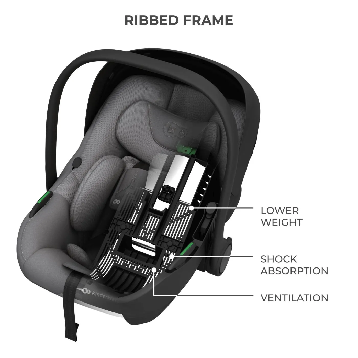 Scoica auto kinderkraft i-lite cu baza endura safe fx grey, copii varsta 0 luni pana la 1 an
