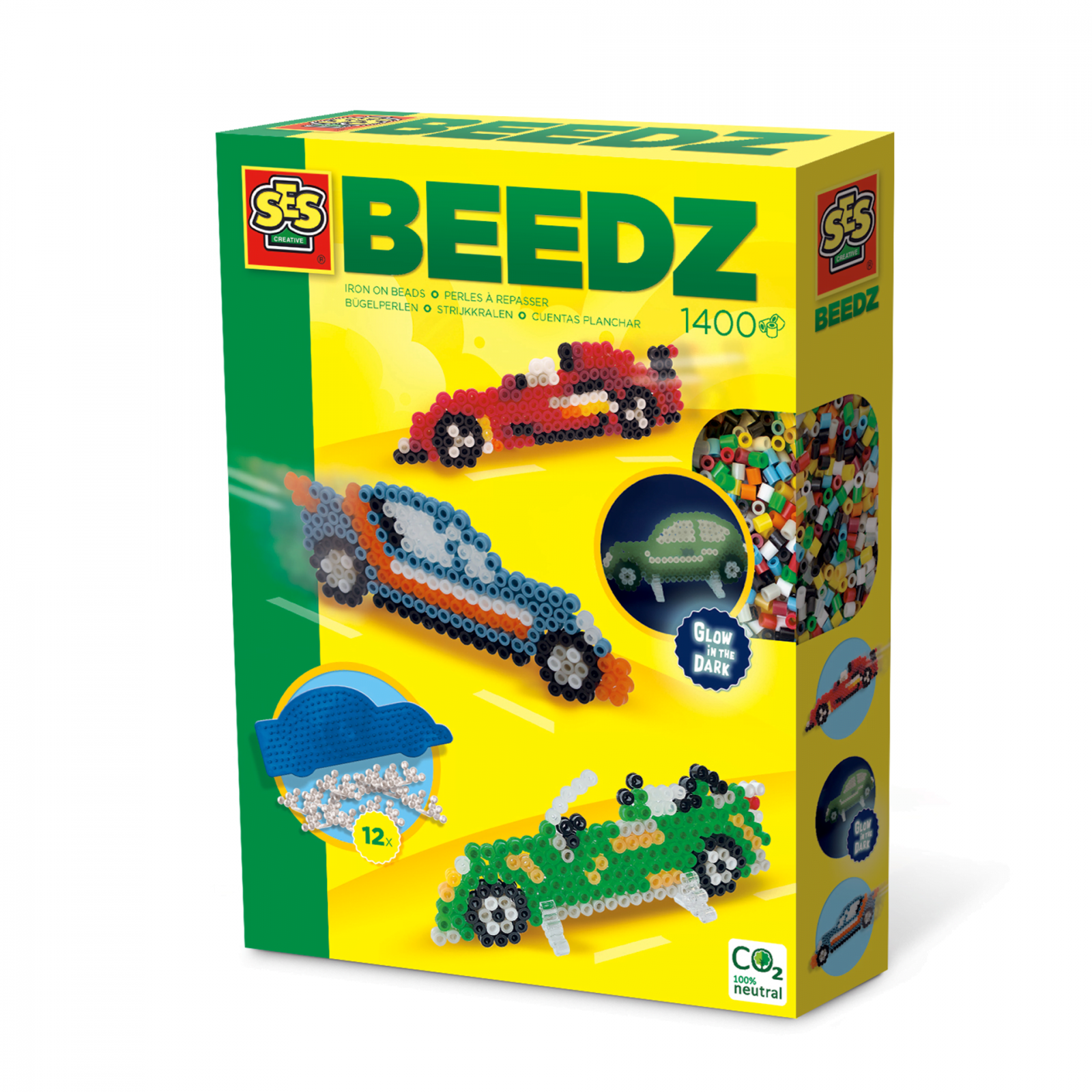 Faceti o masina cool de curse, decapotabila, gandac sau de raliu cu margele de calcat si lupta impotriva prietenilor tai! Cu suporturile furnizate, iti poti parca masina si chiar o poti expune pe noptiera. Cand stingi luminile noaptea, masina ta de curse se va aprinde datorita Beedz-ului care straluceste in intuneric. Contine: geanta cu 1400 de margele, margele care stralucesc in intuneric; hartie de calcat; 12 standuri. Dimensiuni: 15 x 20 x 4 cm.