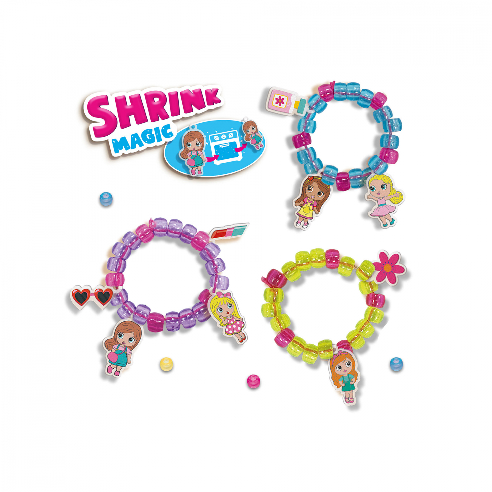 Folia termocontractabila este cu adevarat magica! Folia se micsoreaza in cuptor odata cu designul tau. Devine de sapte ori mai mic si de sapte ori mai gros! Aceasta inseamna ca puteti face detalii mici fara a fi nevoie sa fii cu adevarat precis cand colorezi. Copiii pot cu usurinta sa urmareasca exemplele sau sa creeze propriile lor modele. Dupa ce au fost in cuptor, bretelele pot fi atasate de bratari. Cu amestecul de margele, snur roz si creioane furnizate, puteti crea bratari frumoase. Contine: 2 foi de folie magica termocontractabila; 8 creioane de colorat; snur elastic roz; mix de margele 4 culori; instructiuni cu exemple pentru trasare. Dimensiuni: 15 x 20 x 4 cm.
