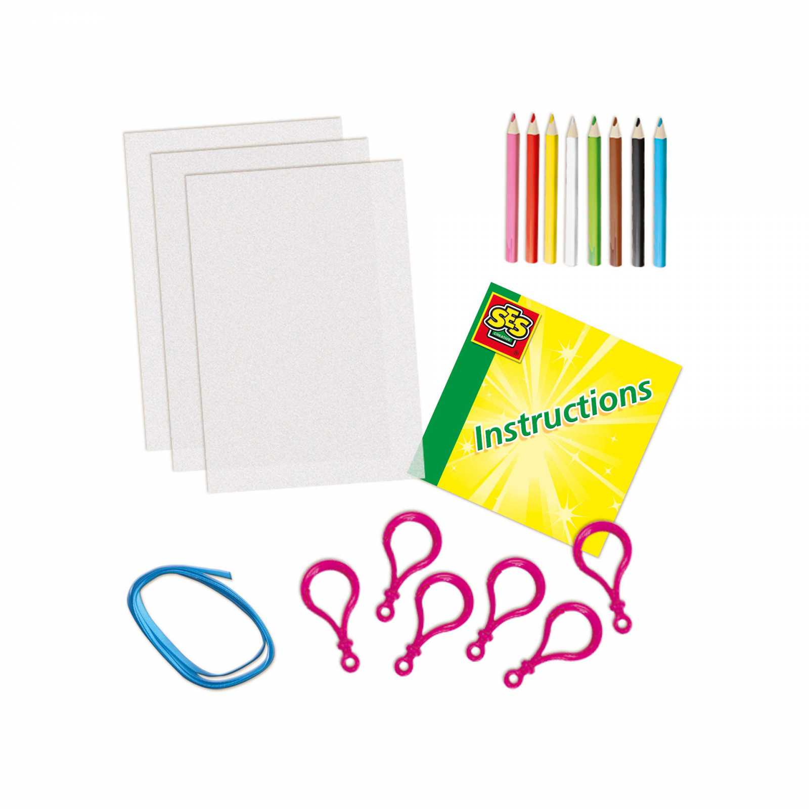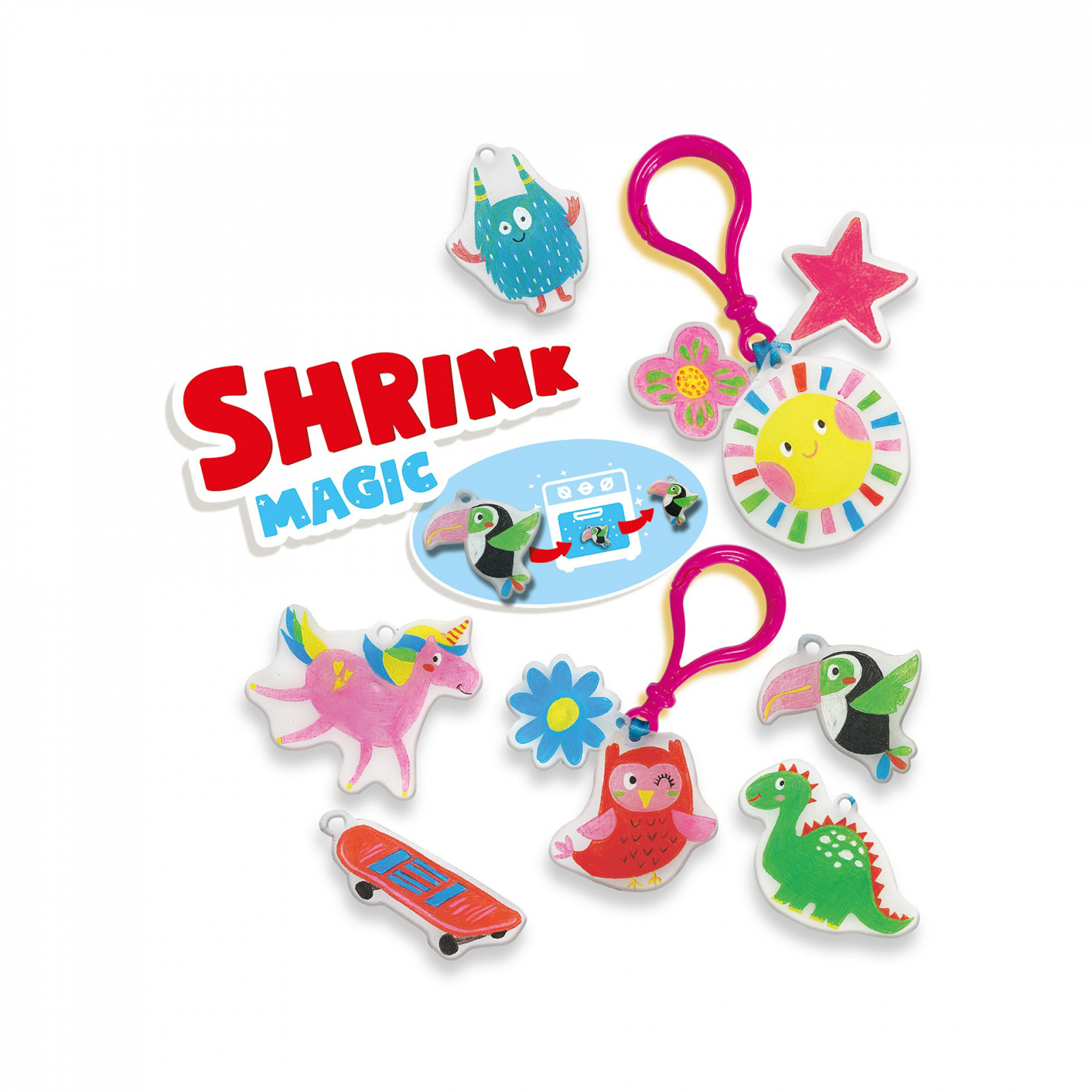 Descoperiti efectul magic al foliei termocontractabile! Acest set contine tot ce aveti nevoie pentru a va face propriile brelocuri. Urmariti exemplele, colorati-le si apoi puneti-le intr-un cuptor cald. Uite cat de repede se micsoreaza. Se micsoreaza de sapte ori. Nimeni nu are astfel de brelocuri unice. Contine: 3 foi de film termocontractabil; 8 creioane colorate; 6 brelocuri din plastic; panglica. Dimensiuni: 15 x 20 x 4 cm.