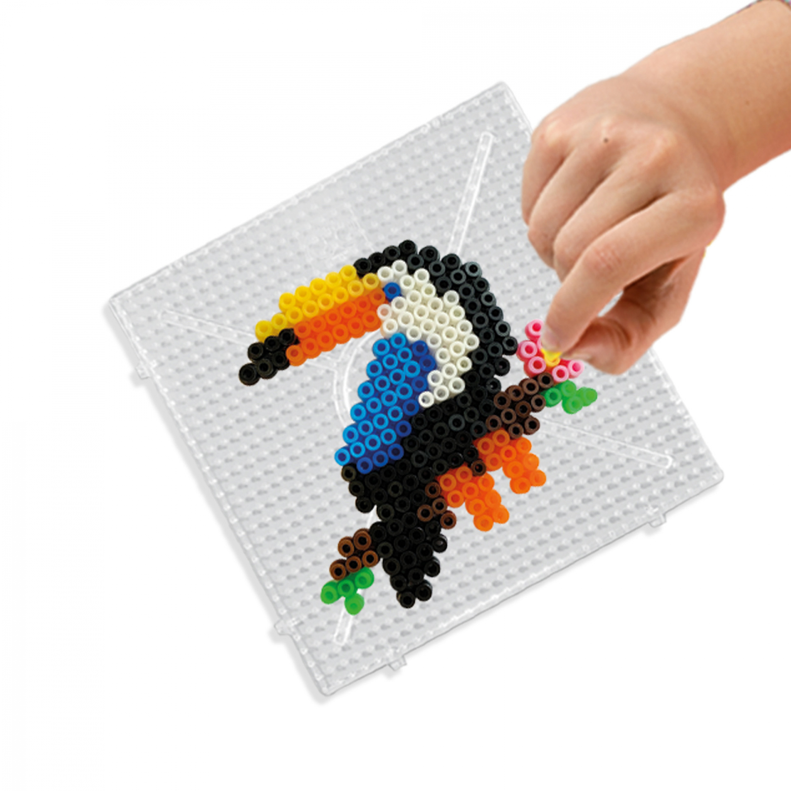 Set creativ copii - Margele de calcat cu Animale din Jungla Beedz. - Fa un tucan vesel, un lenes adormit, un papagal colorat, un tigru inflacarat, un koala dulce si un panda care mananca. Contine: 2400 de margele; mini placa patrata; hartie de calcat. Dimensiuni: 30 x 20 x 4 cm.