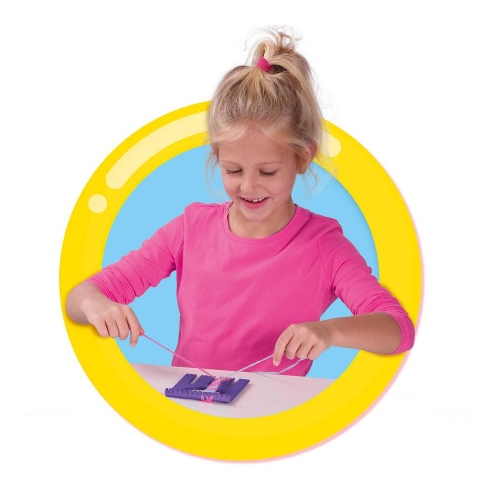 Set creativ de tesut pentru copii cu gherghef si accesorii. - Puteti realiza tot felul de creatii distractive cu aceasta unealta de tesut multifunctionala, de la pompoane de diferite dimensiuni la bretele minuscule, ciucuri, umerase de tesut si bratari de prietenie! Frumos pentru tine, dar si frumos pentru a face ceva pentru iubitul sau iubita ta. Cu diferite culori, grosimi de fire si instructiuni clare, puteti incepe imediat. Contine: instrument de artizanat/tesut multifunctional; 3 culori de ata de brodat; 4 culori de fire acrilice groase; ac.
