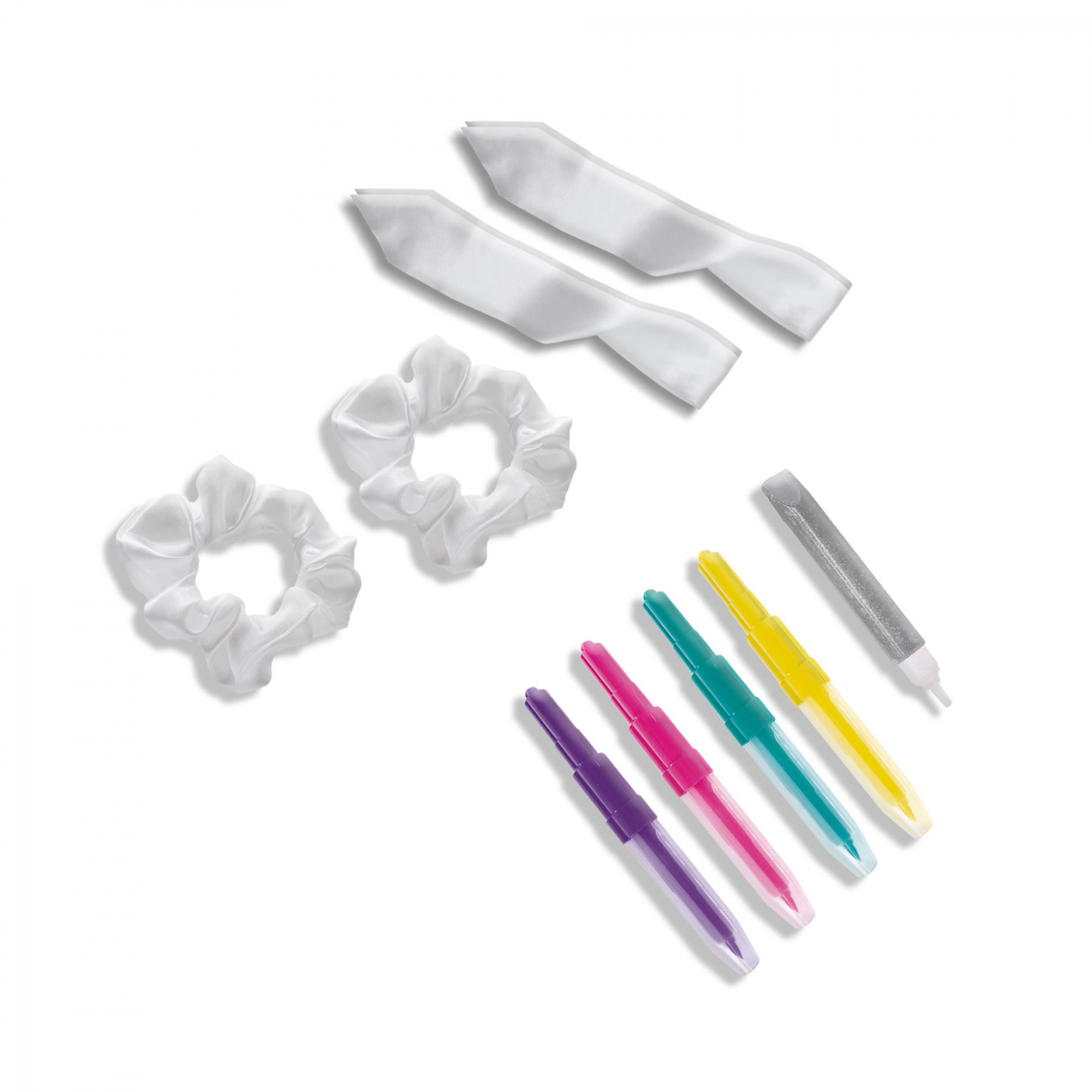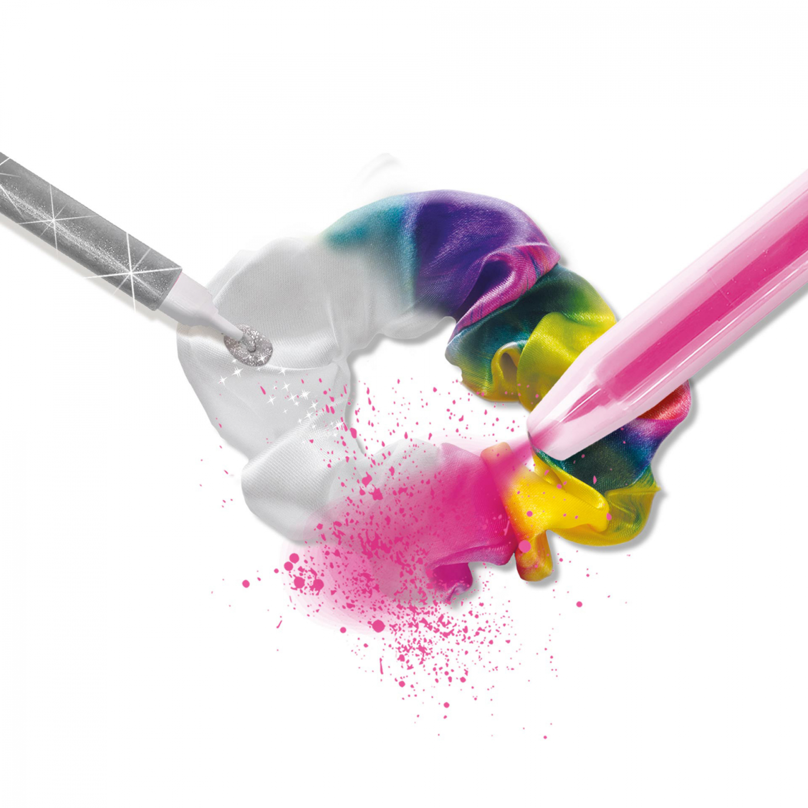 Cat de distractiv este daca poti sa-ti decorezi propriile elastice de par? Un must-have pentru fiecare fashionista. Cu cele patru pixuri colorate cu suflare aerograf si lipiciul cu sclipici, poti crea cele mai tari figurine, modele si efecte. Contine: 2 elastice de par; 2 panglici; 4 pixuri cu aerograf cu suflare; adeziv cu sclipici argintiu. Dimensiuni: 20 x 20 x 4 cm.