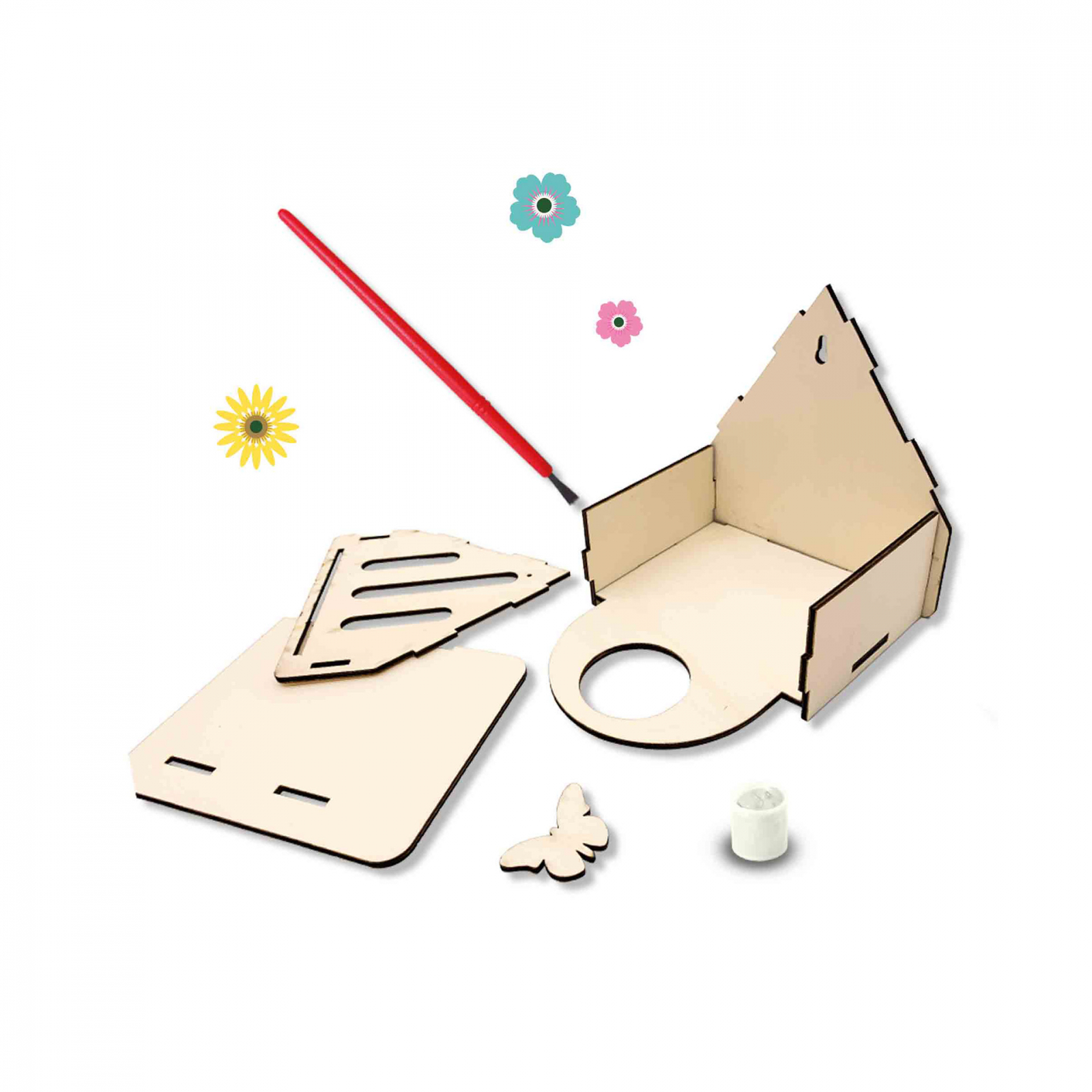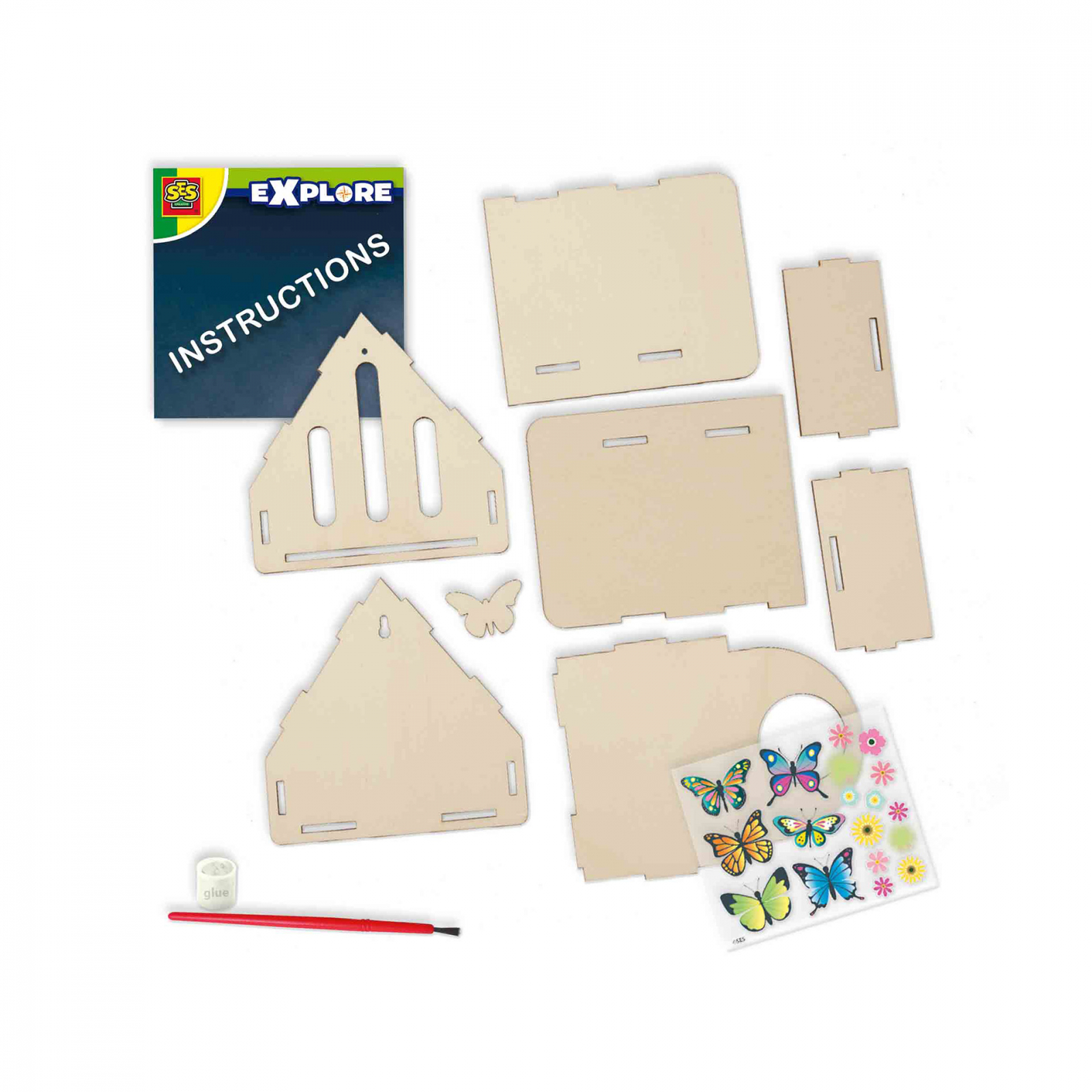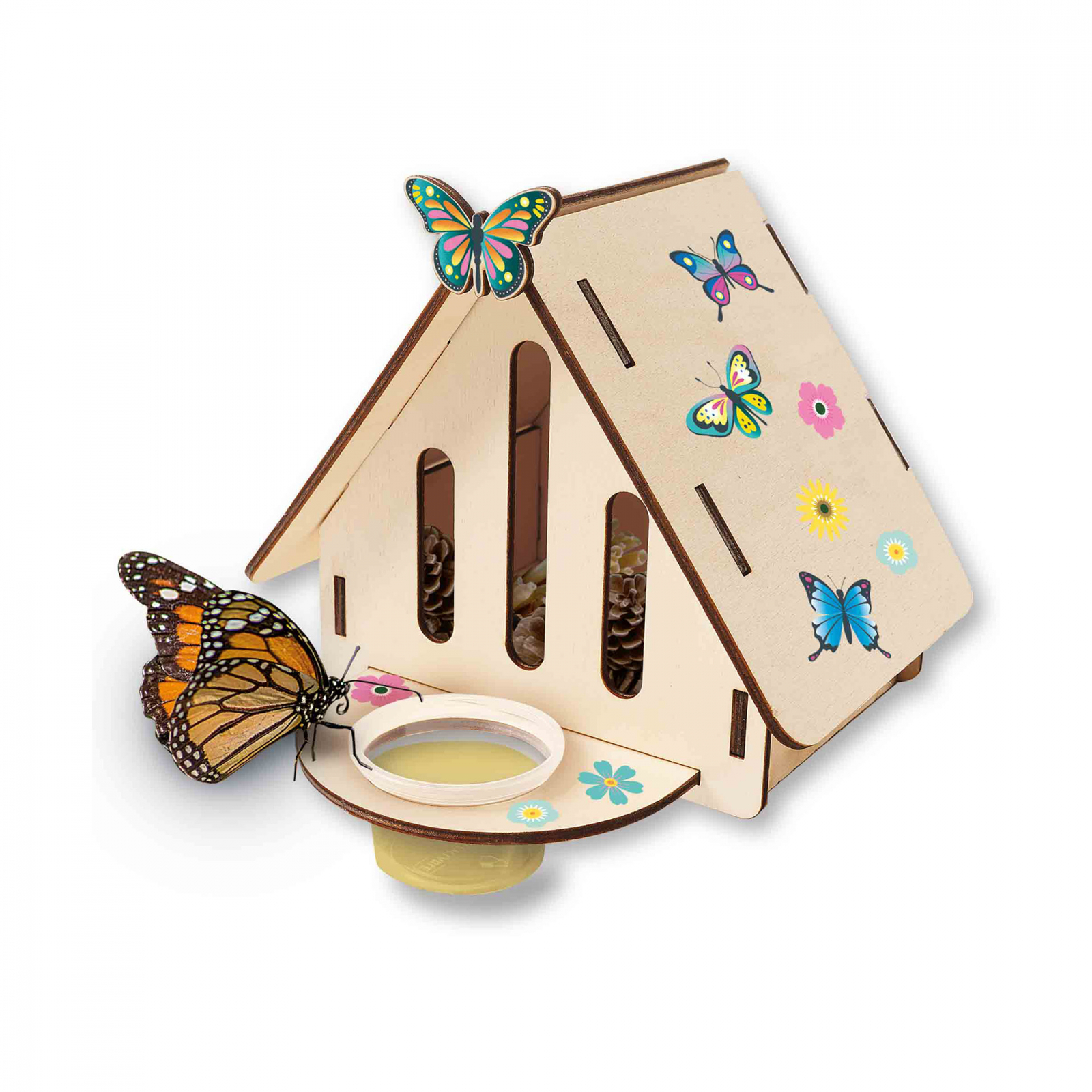 Hotelul pentru fluturi va face ca fluturii reali sa aiba un loc sigur in curtea din spate sau balcon! Copiii pot creea acest hotel pentru fluturi singuri. Aceasta jucarie STEM nu este doar foarte distractiva, ci si educativa. Hotelul pentru fluturi este realizat din materiale durabile. Prin colectarea materialelor naturale pentru a le pune in hotel si turnarea siropului in recipient cei mai frumosi fluturi vor fi atrasi de hotelul de fluturi auto-construit. Contine: piese din lemn pentru hotel; lipici; perie; recipient pentru sirop; foaie cu autocolante fluturi; instructiuni. Dimensiuni: 20 x 20 x 4 cm.