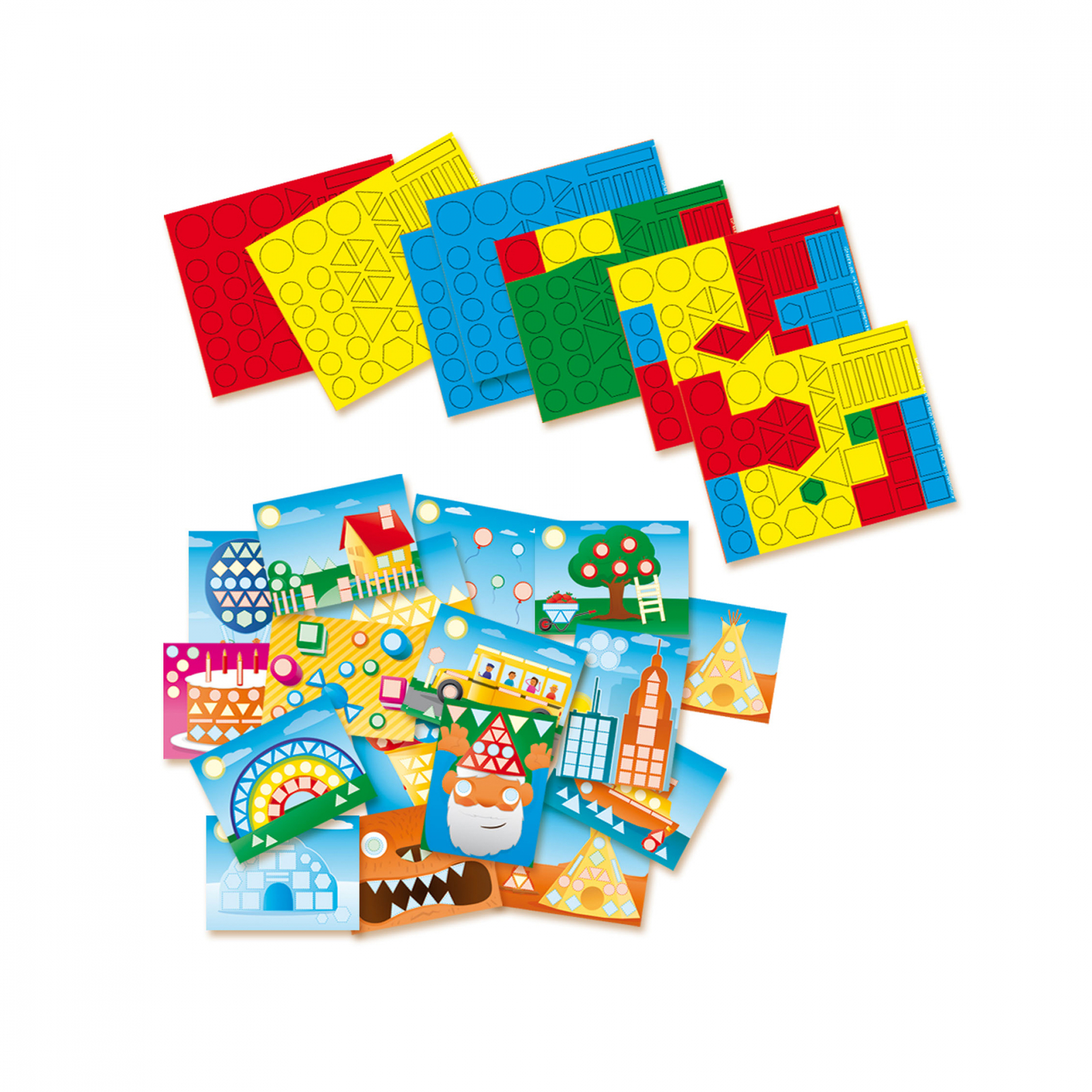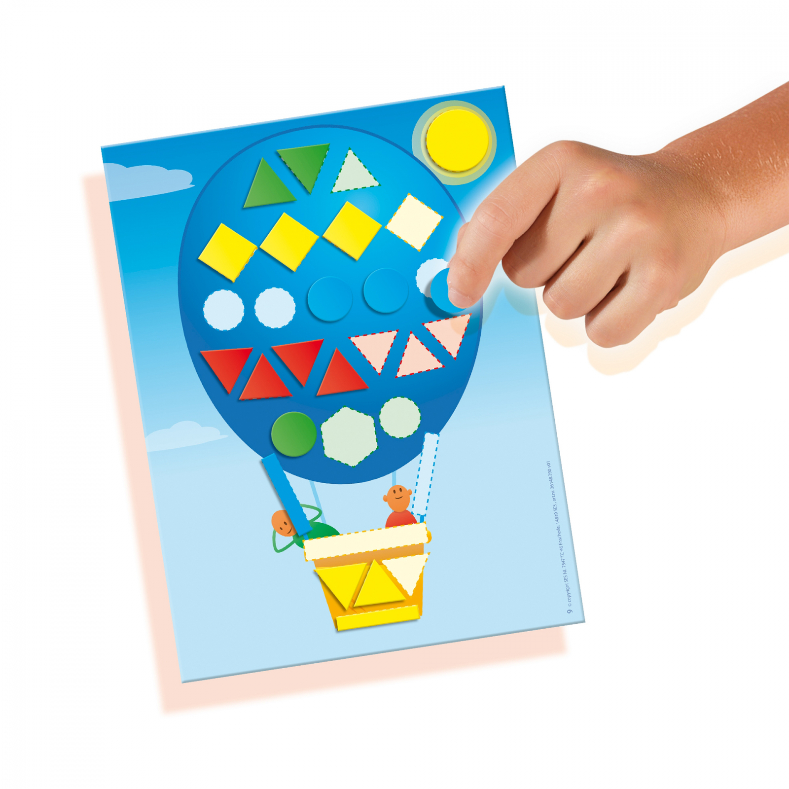 Recunoasterea diferitelor forme. Cautati forma corecta cu culoarea potrivita si lipiti-o pe foi (vezi linia punctata). In curand vei incepe sa vezi forme peste tot in jurul tau. Contine: 16 foi de autocolante cu diferite teme; 7 foi cu autocolante in diferite forme si culori: patrat, banda, cerc, triunghi si hexagon. Dimensiuni: 15 x 20 x 4 cm.