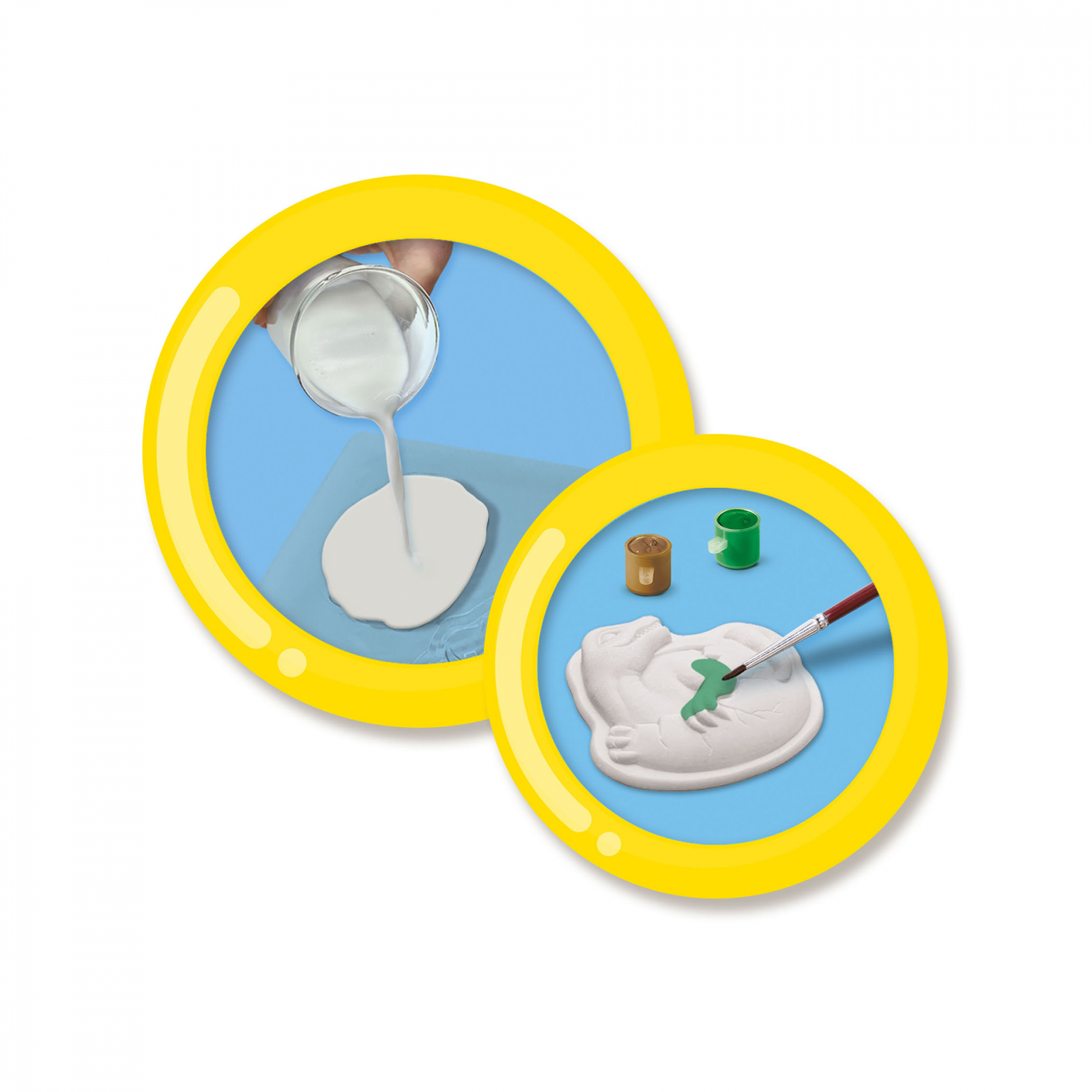 Seturile de mulaj si pictura de la SES Creative sunt un favorit ferm in colectia noastra. Cu acest set de turnare in ipsos, puteti face copii de dinozaur minunati in ouale lor. Si stiati ca matritele sunt din plastic reciclat? La SES Creative, se inoveaza in mod constant produsele pentru a asigura un viitor mai bun. Contine: matrita pentru turnarea oualor de dinozaur; ipsos (300gr); spatula; 6 culori de vopsea poster (6x5 ml); pensula; instructiuni. Dimensiuni: 20 x 20 x 4 cm.