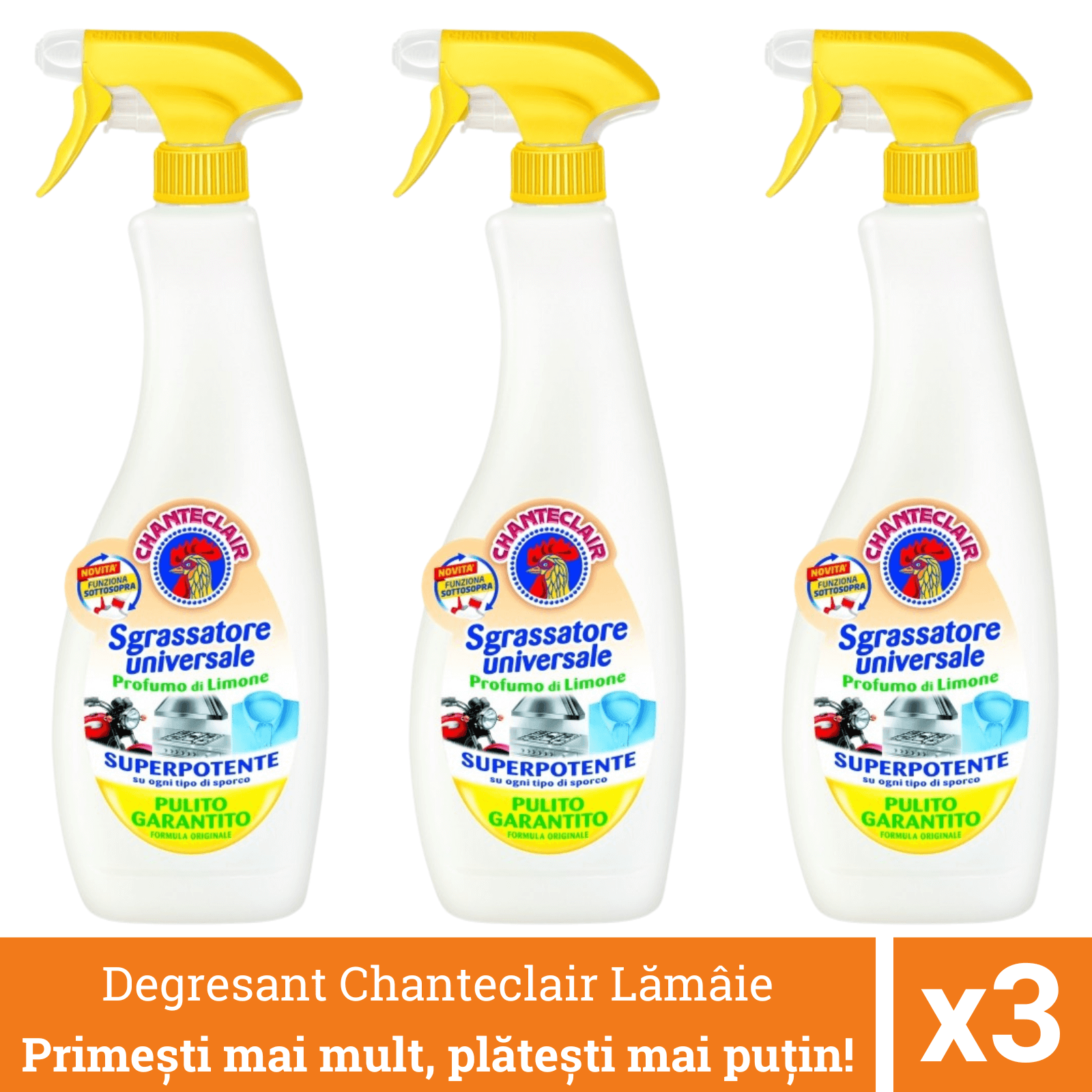 • Degresantul universal Chante Clair spray lamaie 600 ml este o solutie special conceputa pentru curatarea si degresarea mai multor suprafete.