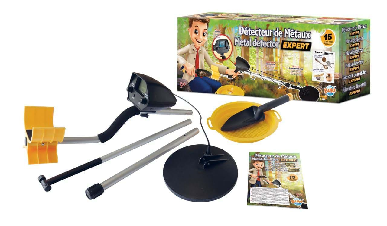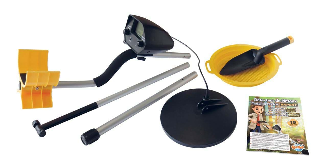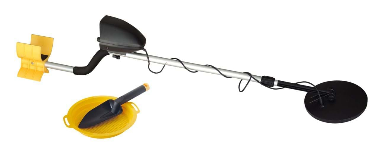 Detectorul de metal te poate ajuta sa gasesti o adevarata comoara! Detectorul de jucarie are afisaj digital, iluminat din spate precum si o functie audio cu volum reglabil. Atat lungimea manerului, cat si sensibilitatea de detectare pot fi ajustate. Setul contine: 1 ecran LCD si cap detector, 1 tub lung de aluminiu, 1 tub scurt de aluminiu si cu surub, 1 tub cu maner si cotiera, 1 lopata mica, 1 sita, instructiuni ilustrate. Dimensiunile cutiei: 60.50 x 16.50 x 22.60 cm Varsta recomandata: 9 ani+ Baterii: necesita 1 baterie de 9V (LR61), neinclusa Avertisment: Numai pentru copiii cu varsta de 9 ani sau mai mari. Avertisement: Nu este potrivit pentru copiii mai mici de 3 ani din cauza pieselor mici care pot fi ingerate. Pericol de sufocare. Pastrati ambalajul pentru referinte viitoare. Culorile si continutul pot varia usor. Necesita 1 baterie de 9V LR61, neinclusa. Bateriile trebuie schimbate de catre un adult. Bateriile sunt clasificate drept deseuri DEEE si aruncate in siguranat atunci cand nu mai sunt necesare.